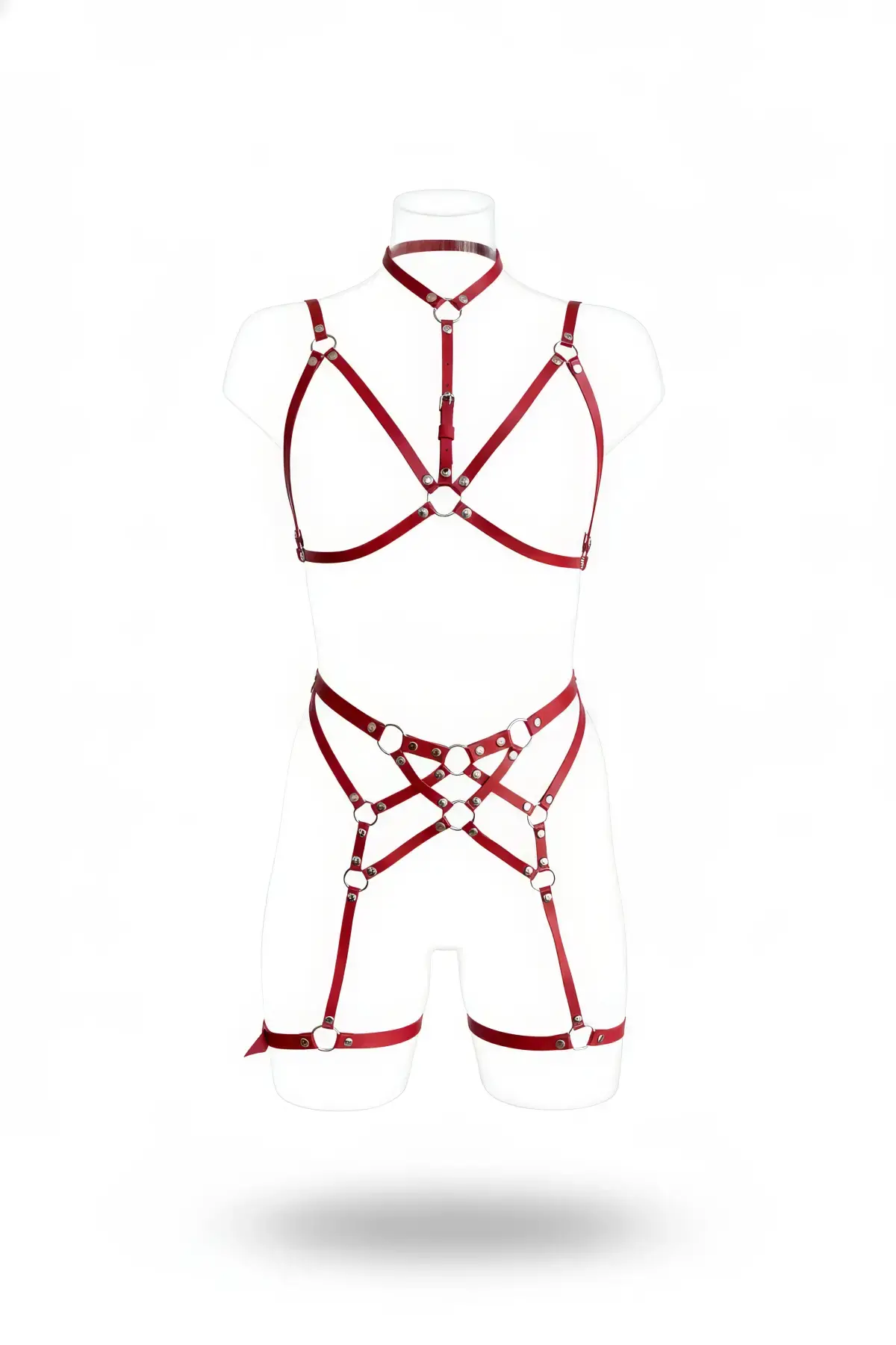 Bordo Jartiyer Harness Suni Deri O-Halka Detaylı Vücut Takımı - APFT507