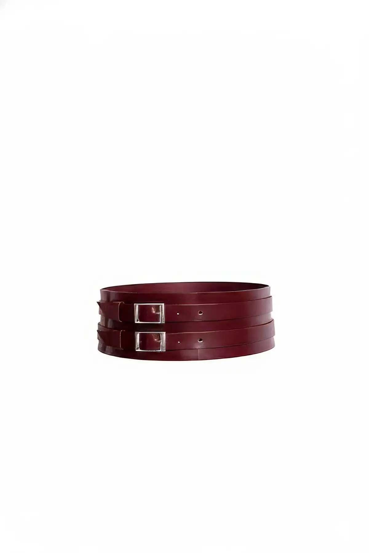 Bordo Kadın Kemer Kalın Çift Tokalı Deri Bel Aksesuarı - APFT907