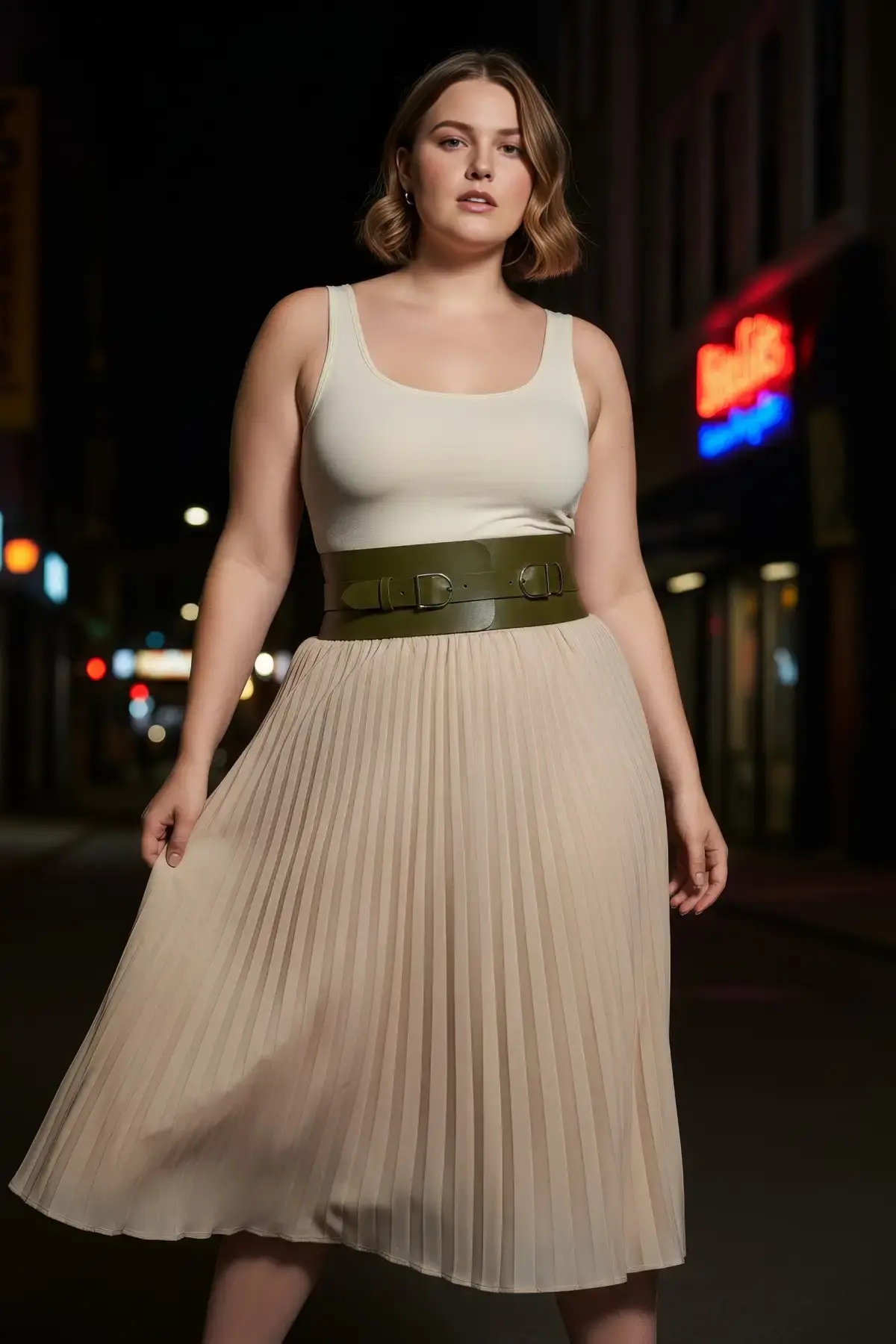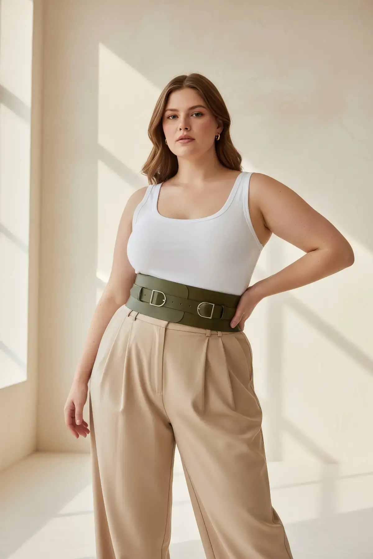 Büyük Beden Haki Kadın Kemer Geniş Bel Korsajı Çift Toka Detaylı - APFT875