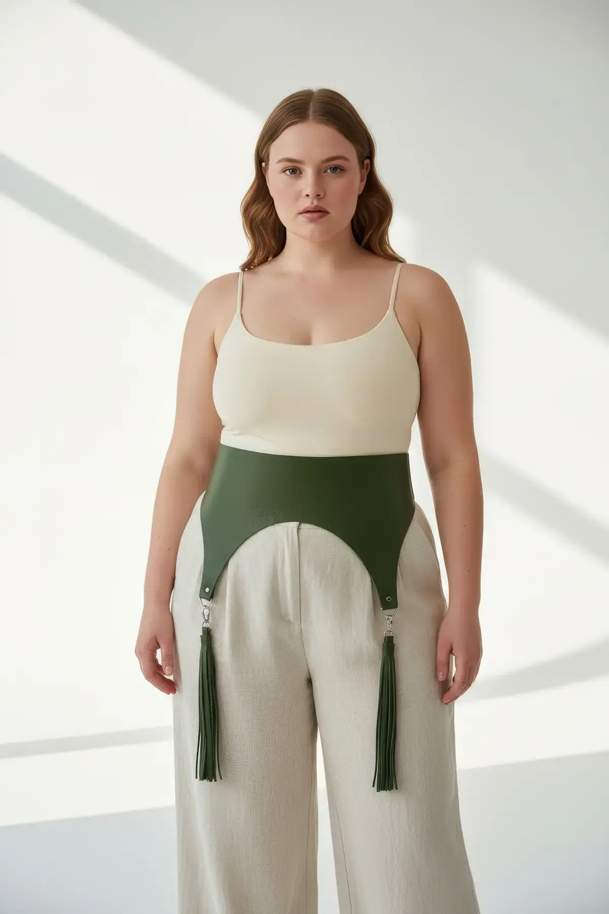 Büyük Beden Haki Kadın Kemer Korse Stil Püskül Detaylı - APFT788
