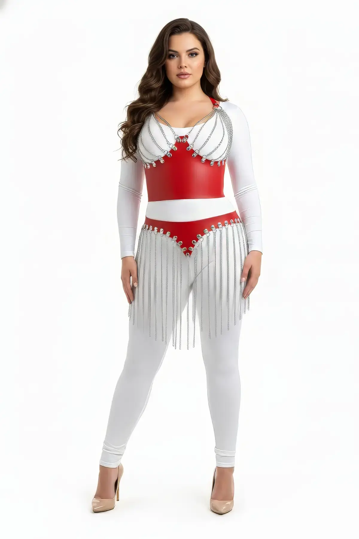 Büyük Beden Kırmızı Etek Zincir Püsküllü Deri Aksesuar - APFT994