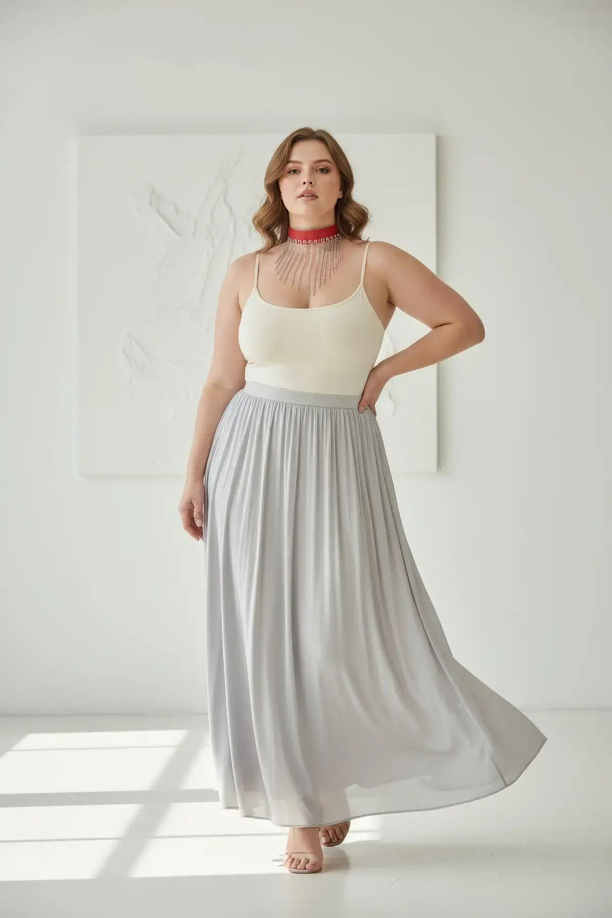 Büyük Beden Kırmızı Kadın Deri Kemer Zincir Püskül Detaylı Şık Aksesuar - APFT629