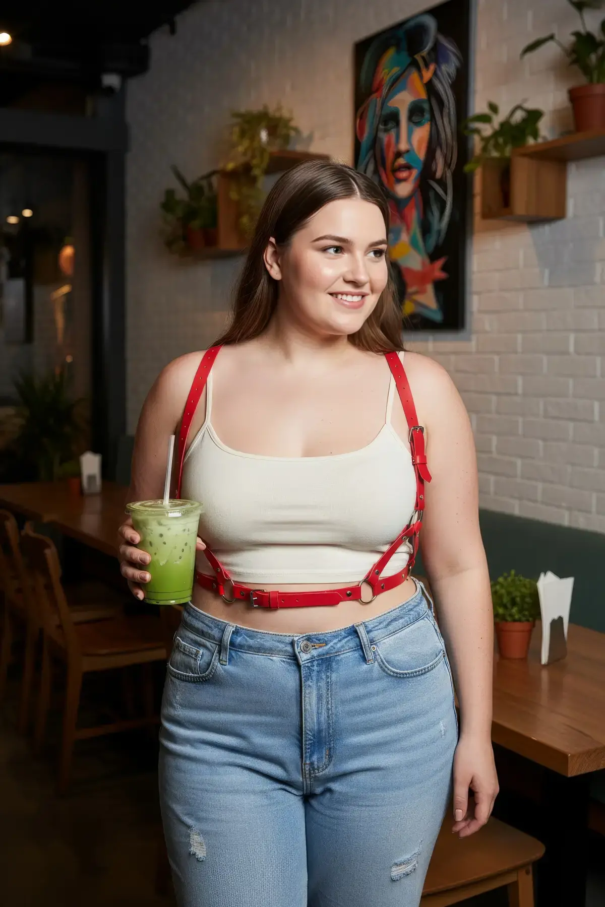 Büyük Beden Kırmızı Kadın Kemer Deri Harness Zincir Detaylı Vücut Aksesuarı - APFT9