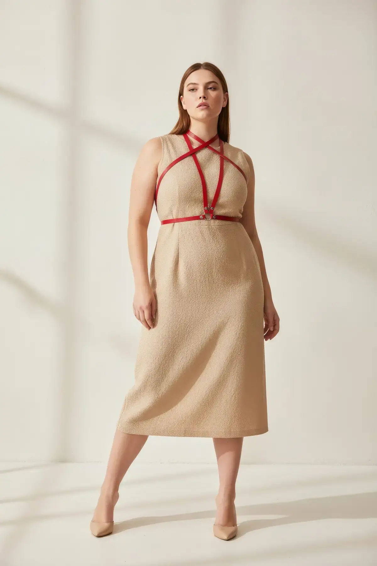 Büyük Beden Kırmızı Kadın Kemer Deri Harness Tarzı Elbise Aksesuarı - APFT15