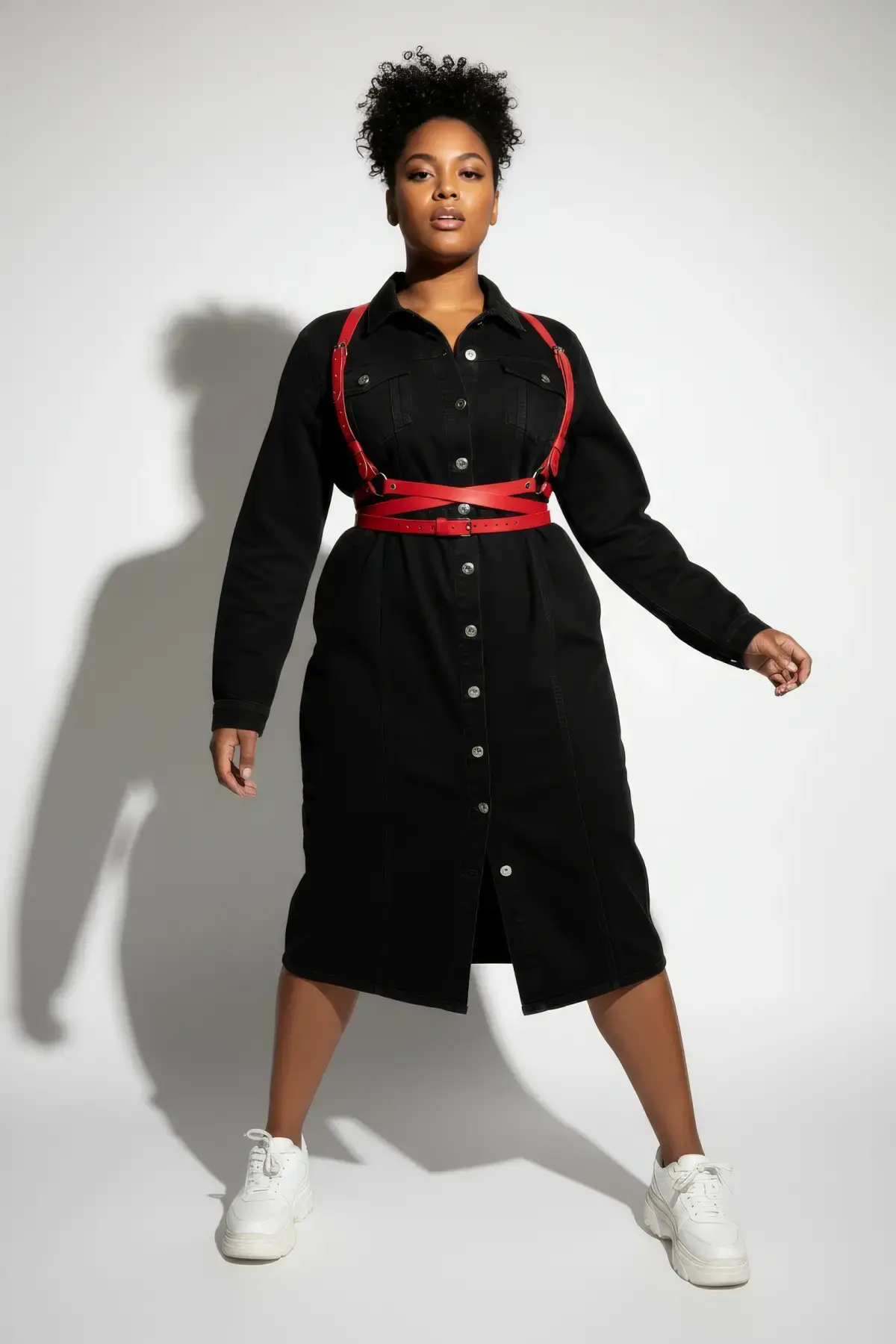 Büyük Beden Kırmızı Kadın Kemer Deri Harness Vücut Aksesuarı - APFT198