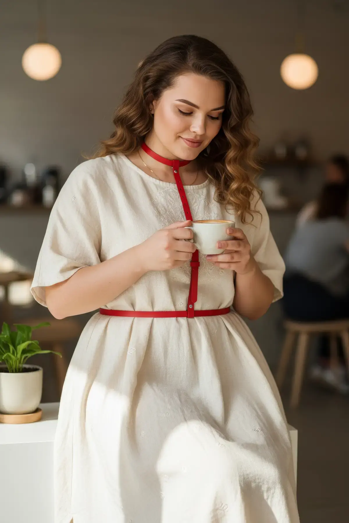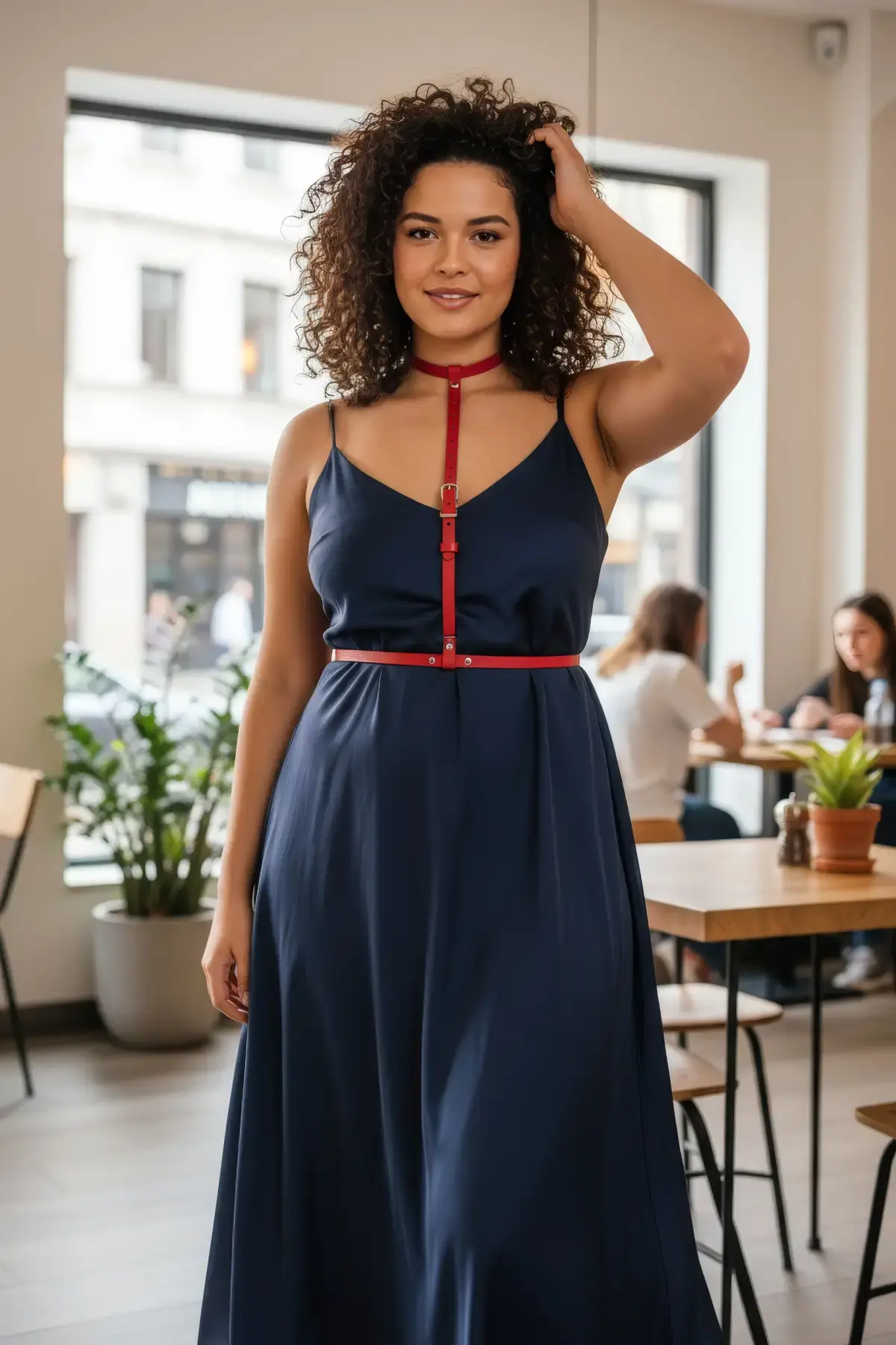 Büyük Beden Kırmızı Kadın Kemer, İddialı Deri Harness Vücut Aksesuarı - APFT188