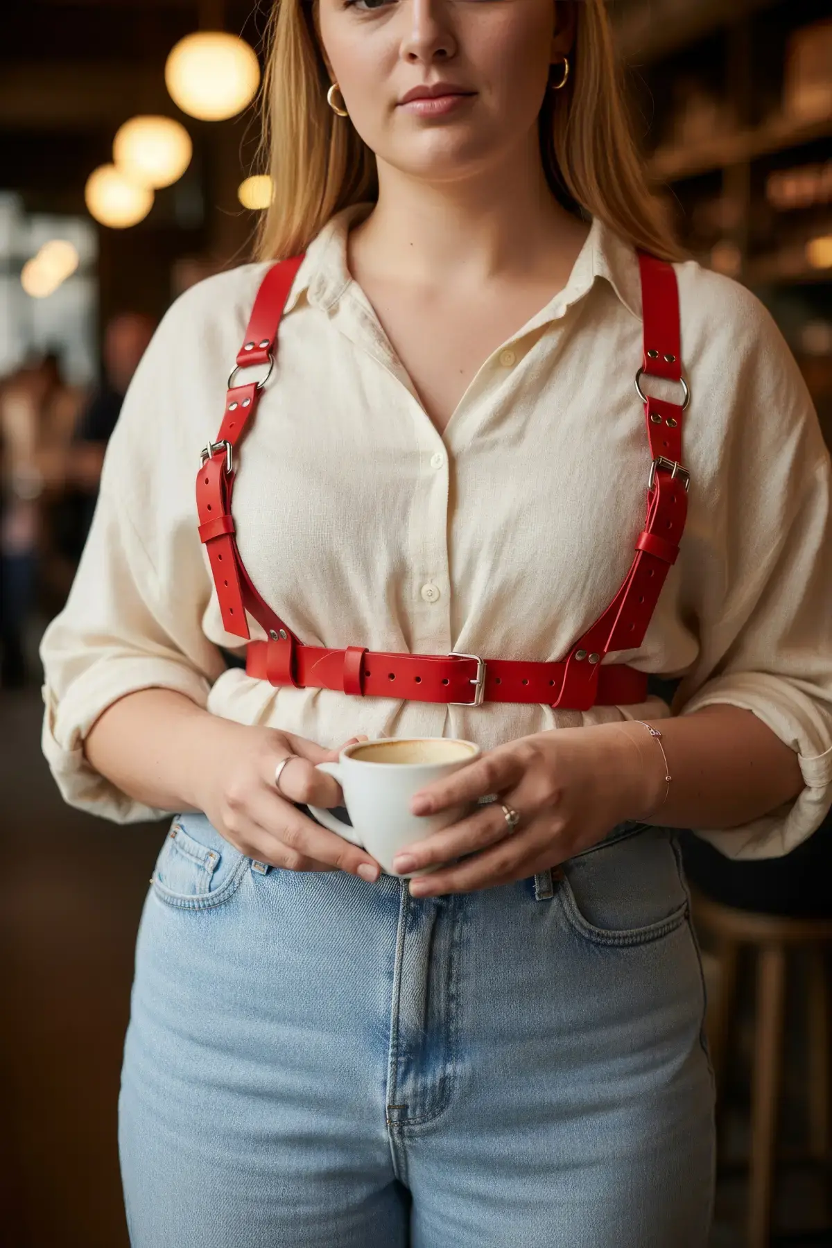 Büyük Beden Kırmızı Kadın Kemer, Kalın Deri Harness Vücut Aksesuarı - APFT529