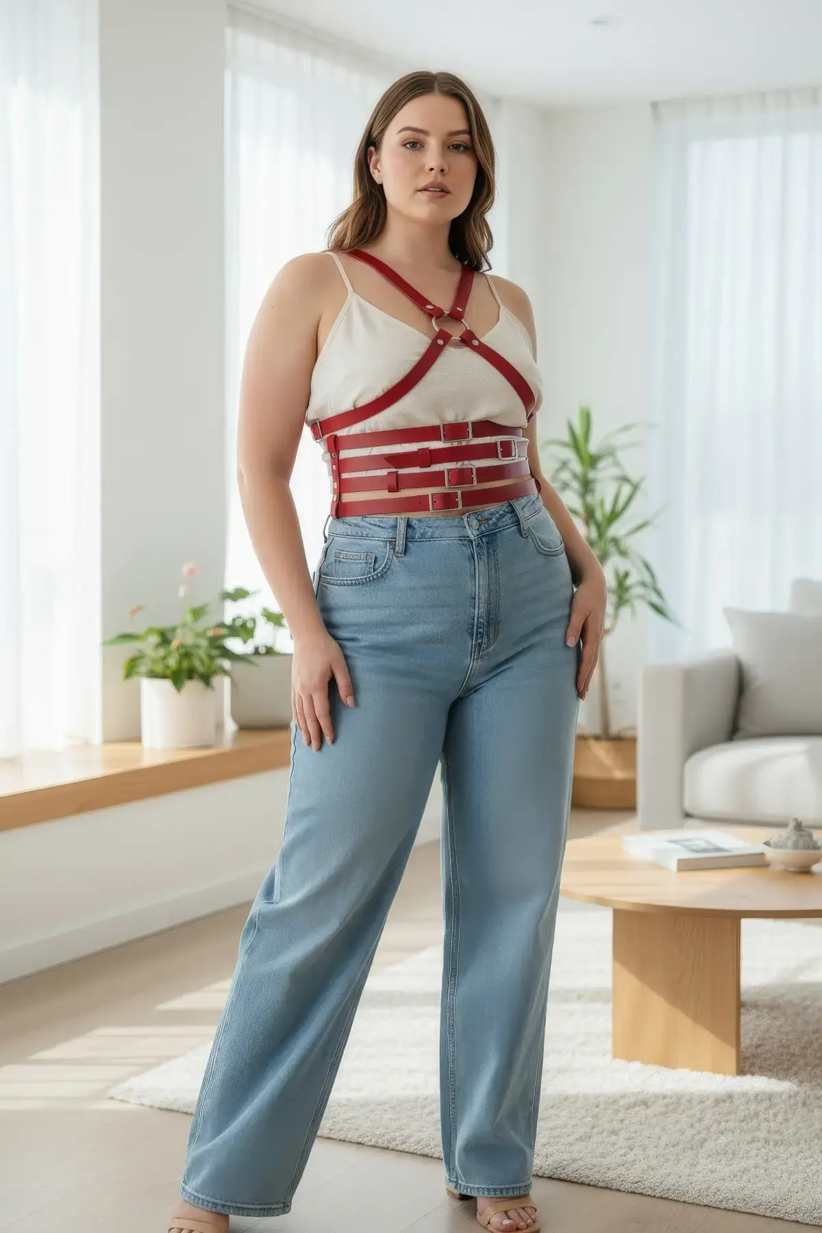 Büyük Beden Kırmızı Kadın Kemer İddialı Deri Askılı Vücut Aksesuarı - APFT1257