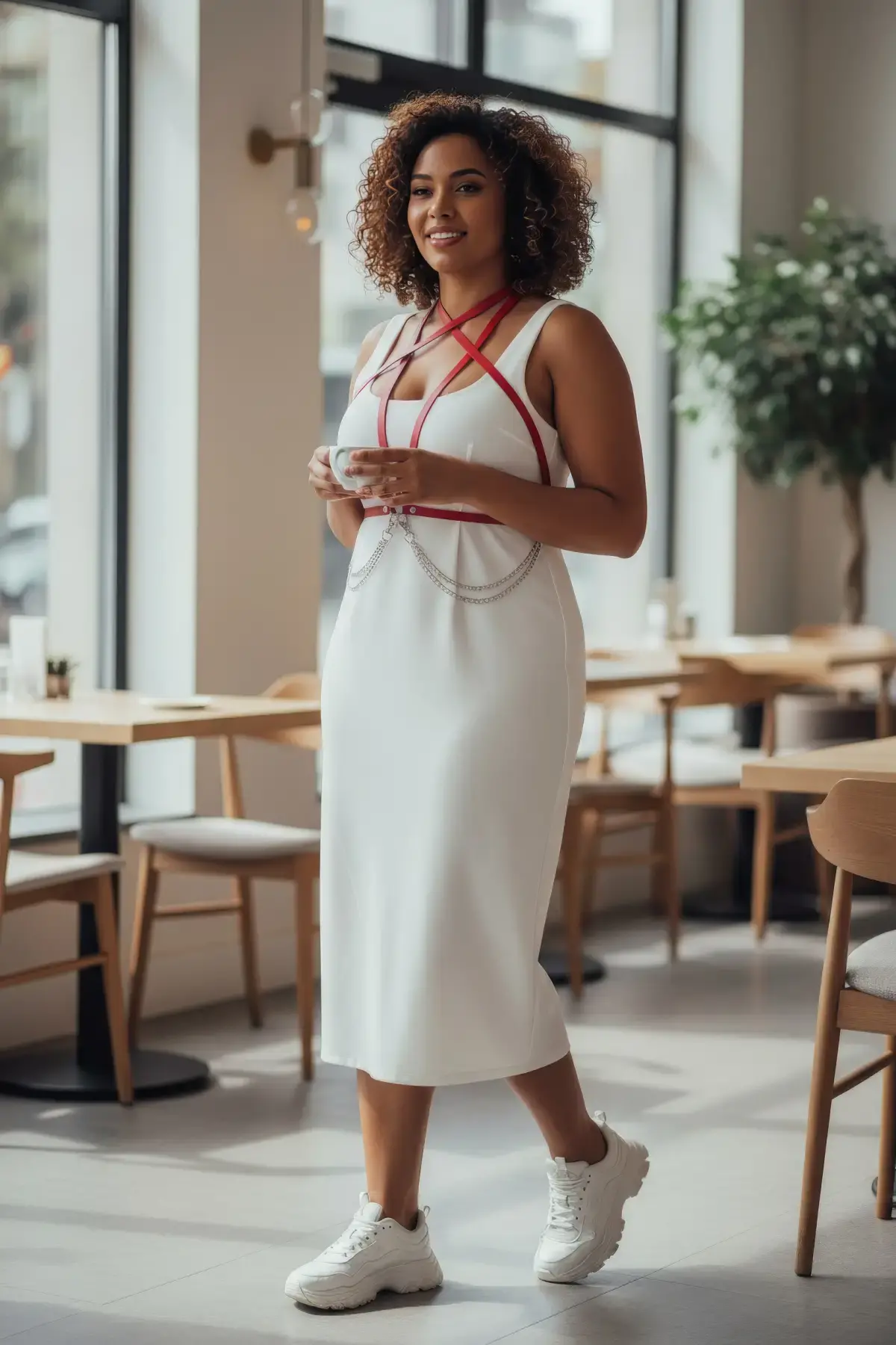 Büyük Beden Kırmızı Kadın Kemer Zincir Detaylı Deri Vücut Aksesuarı - APFT52