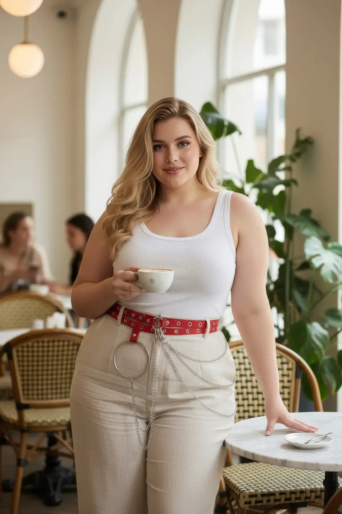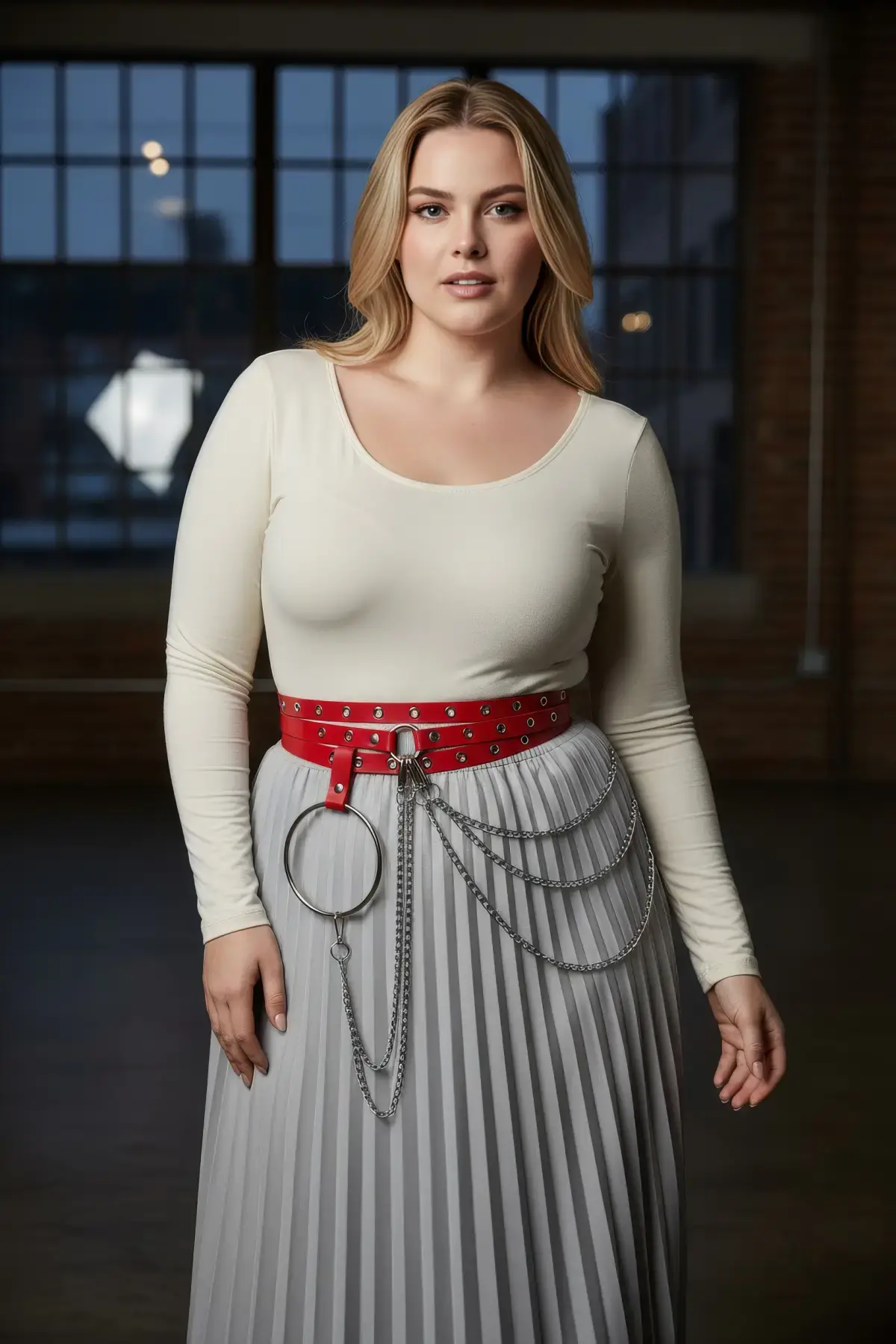Büyük Beden Kırmızı Kadın Kemer Zincir ve Halka Detaylı Deri Görünümlü - APFT731
