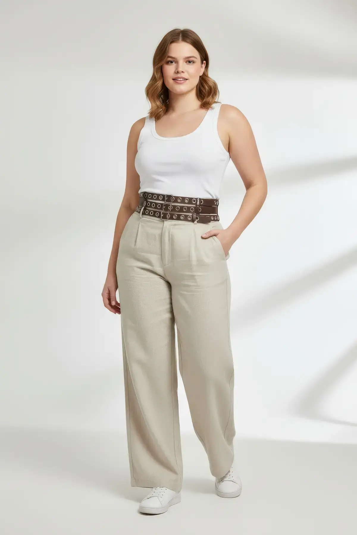 Büyük Beden Haki Kadın Korse Kemer Bağcıklı Detaylı Estetik Tasarım - APFT855