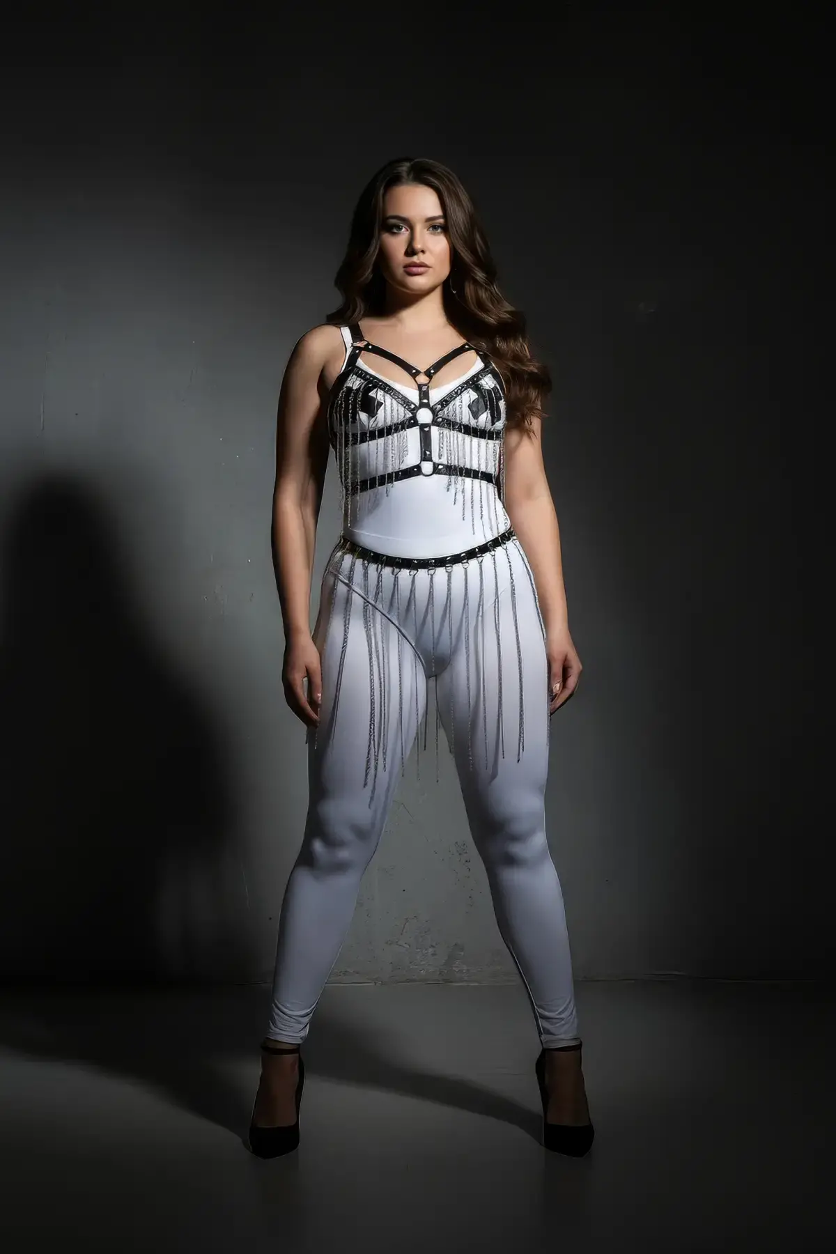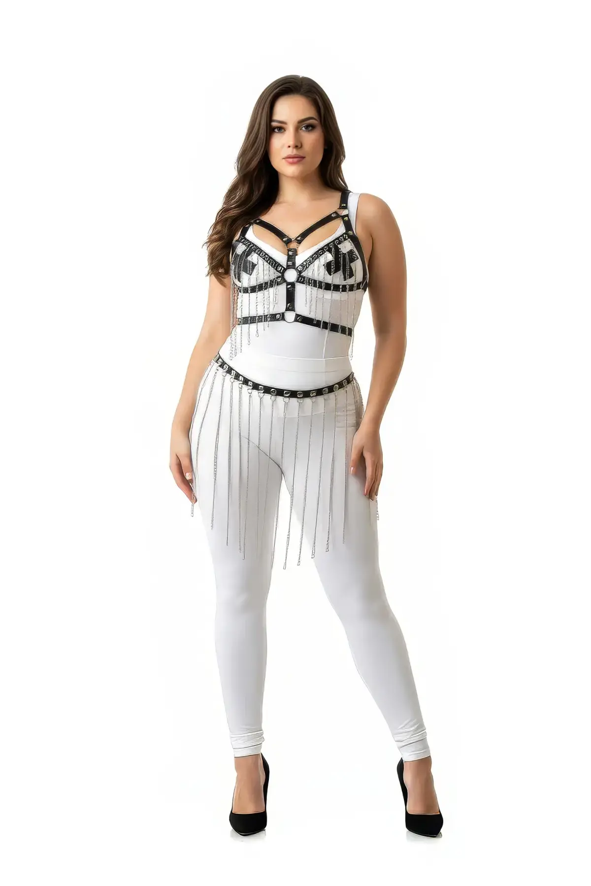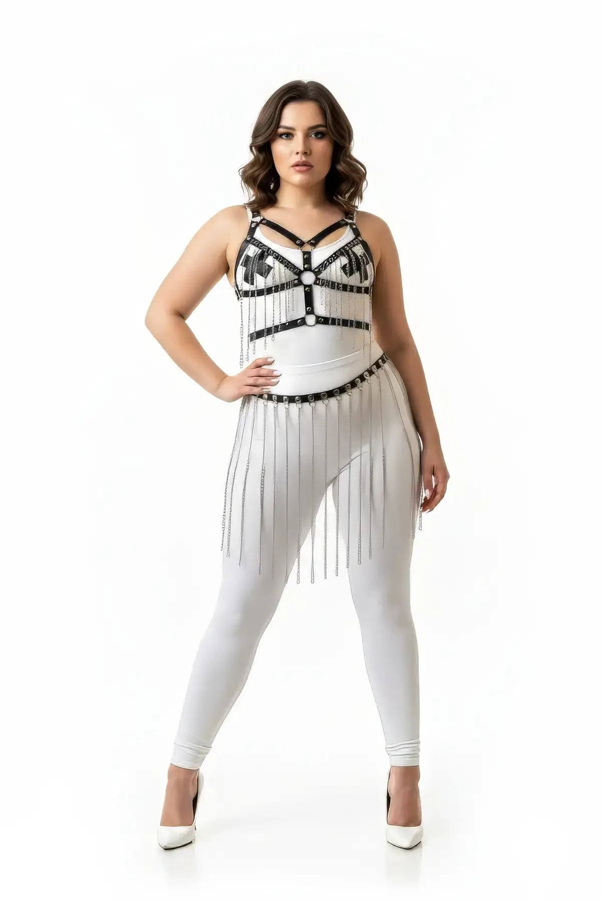 Büyük Beden Siyah Kadın Harness Takım Full Body Jartiyerli Deri Aksesuar - APFT1267