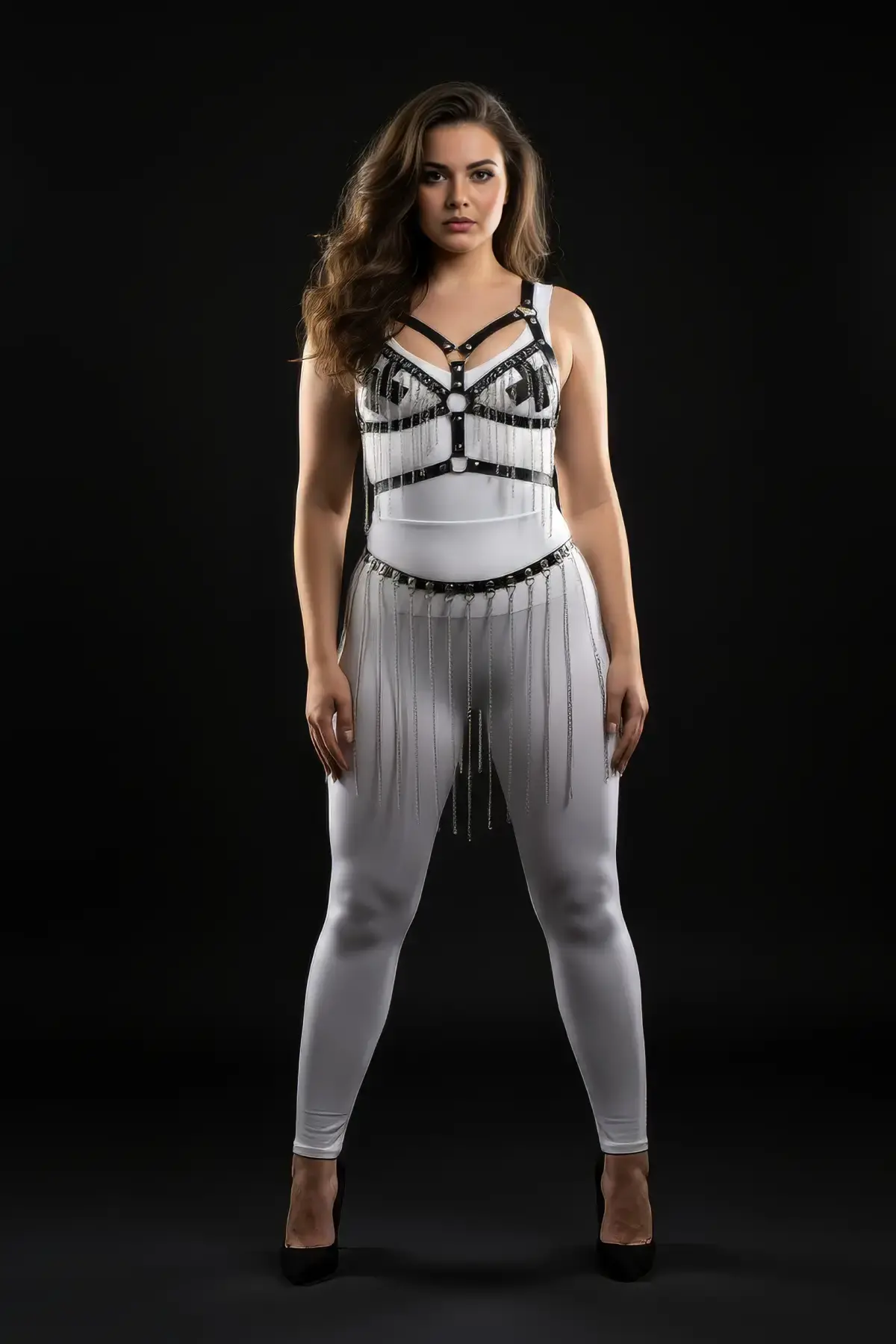 Büyük Beden Siyah Kadın Deri Göğüs Harness Fantazi Aksesuarı - APFT244