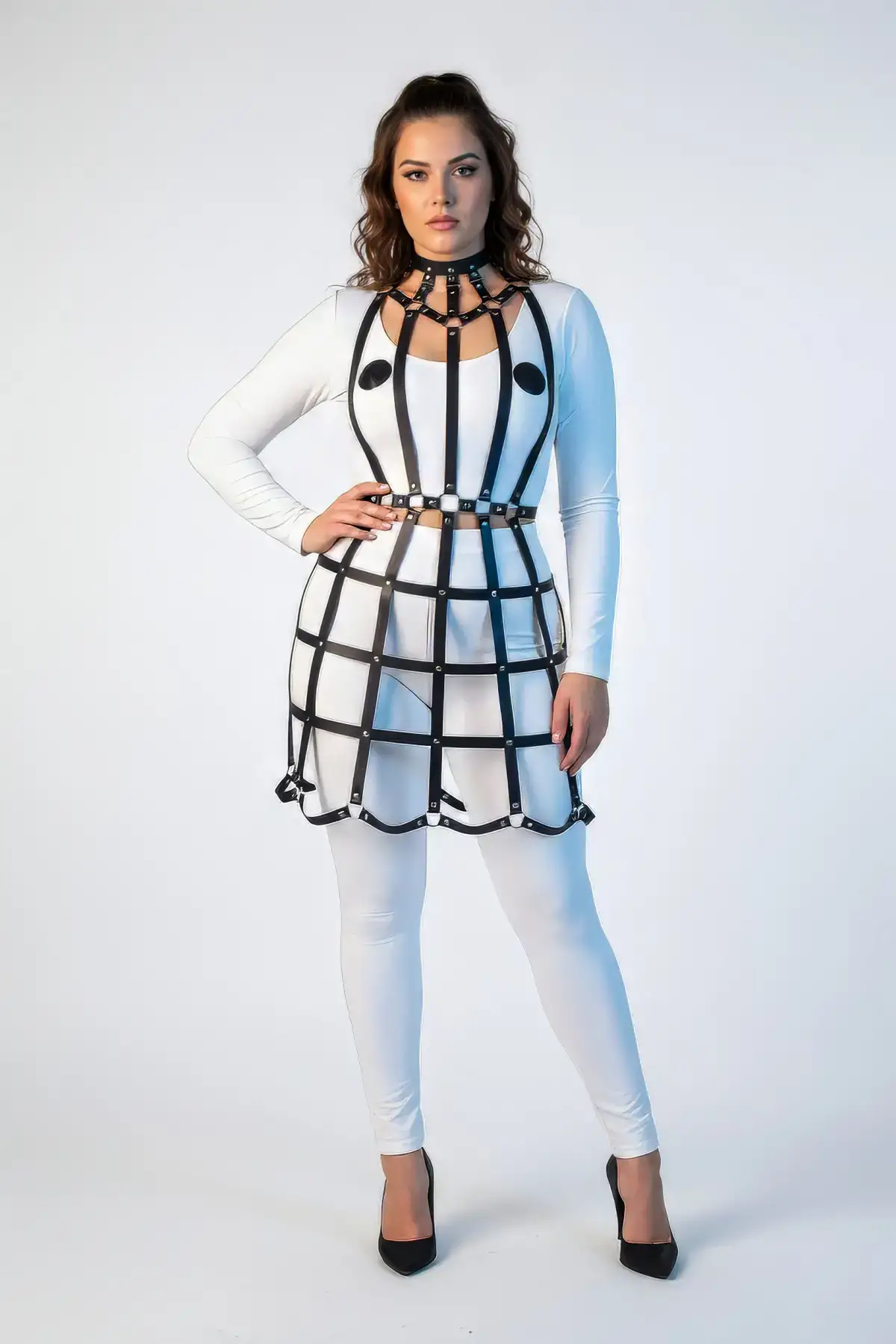 Büyük Beden Siyah Kadın Deri Harness Metal Detaylı Vücut Aksesuarı - APFT295