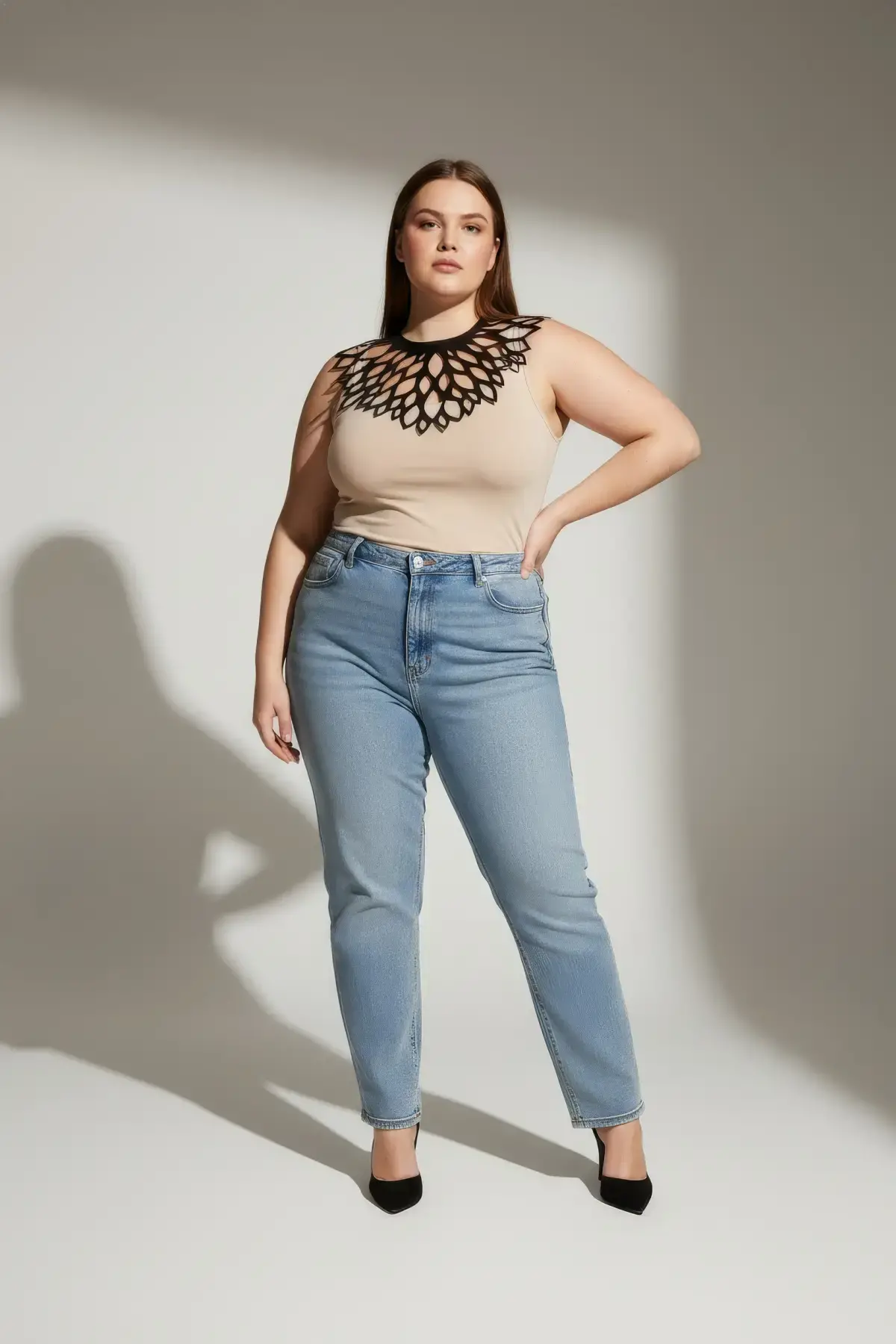 Büyük Beden Siyah Kadın Choker Lazer Kesim Estetik Kombin Tamamlayıcı - APFT1407