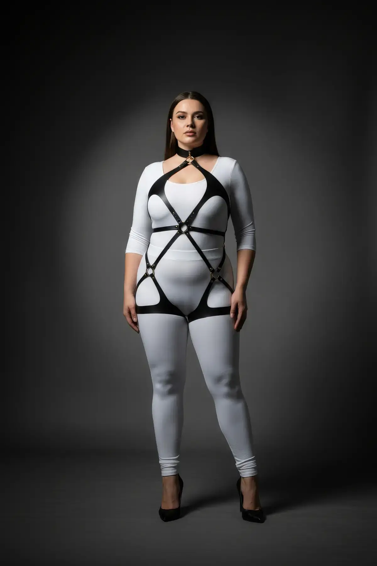 Büyük Beden Siyah Kadın Deri Full Body Harness Takım Günlük ve Fantezi Kombin Aksesuarı - APFT1331