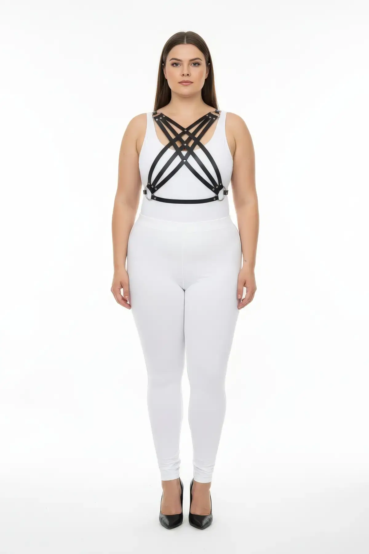 Büyük Beden Siyah Kadın Deri Göğüs Harness Fantazi Aksesuarı - APFT244