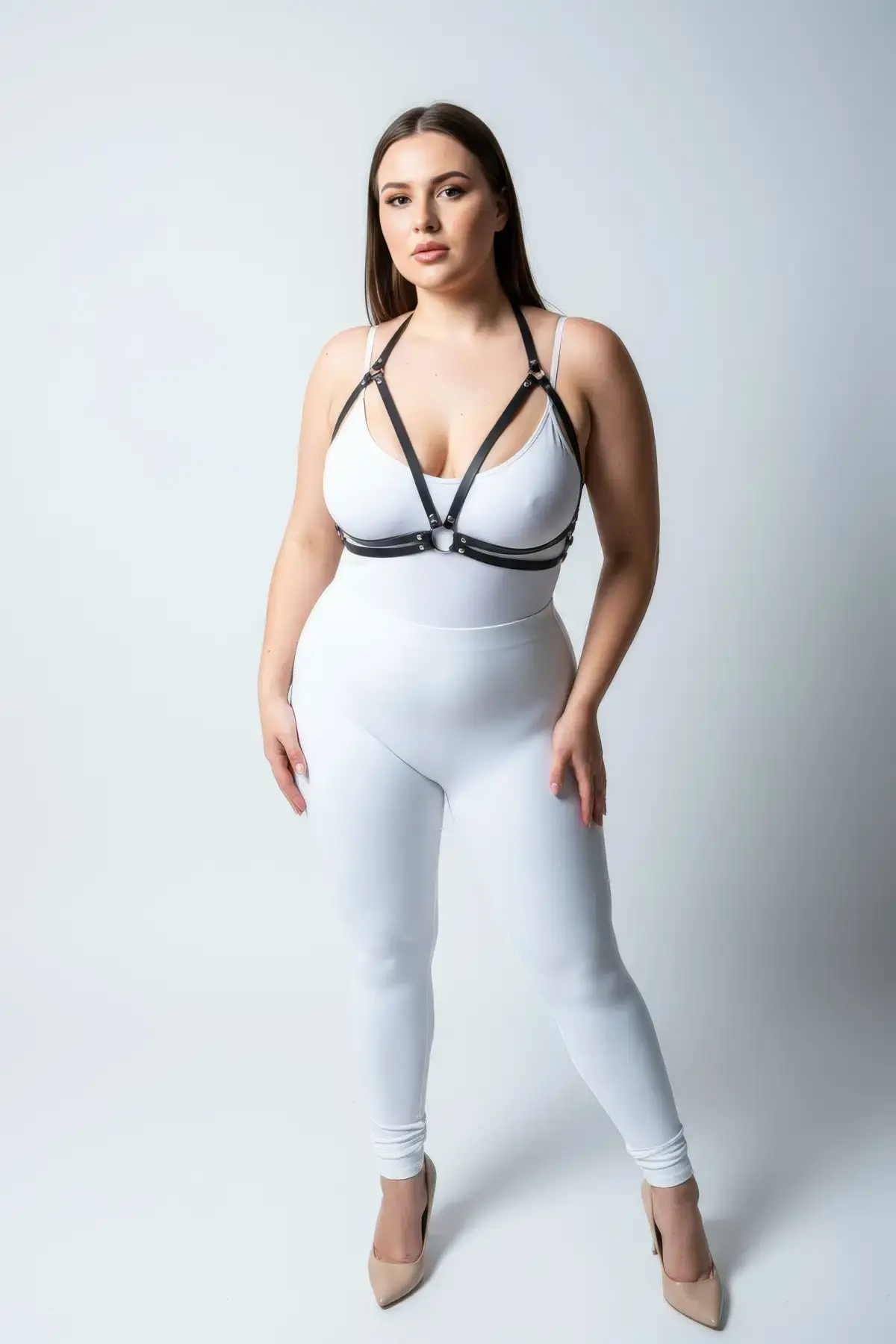 Büyük Beden Siyah Kadın Deri Görünümlü Harness Takım Ayarlanabilir Vücut Aksesuarı - APFT867