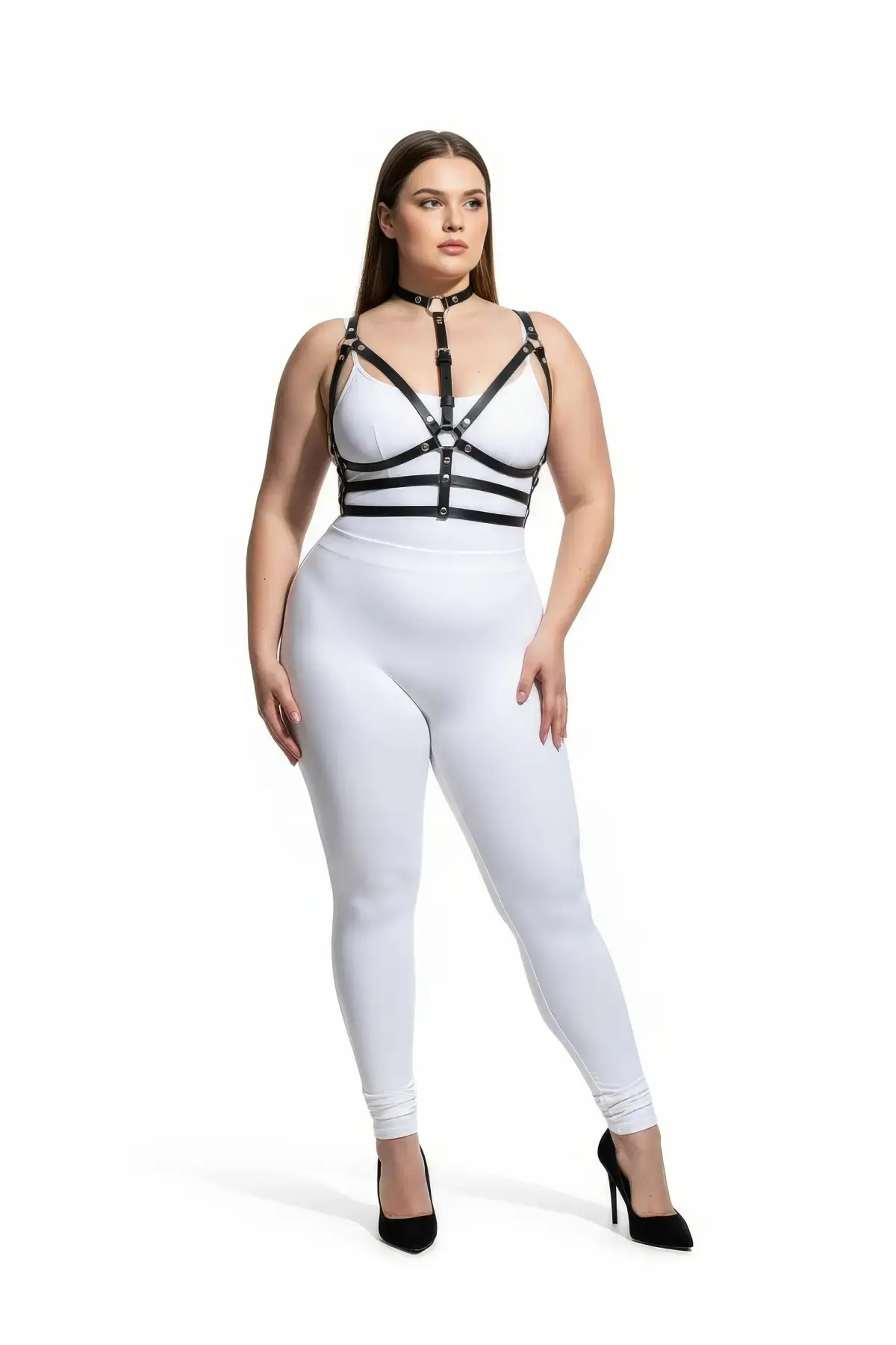 Büyük Beden Siyah Kadın Kemer Zımba Detaylı Deri Harness Vücut Aksesuarı - APFT1299