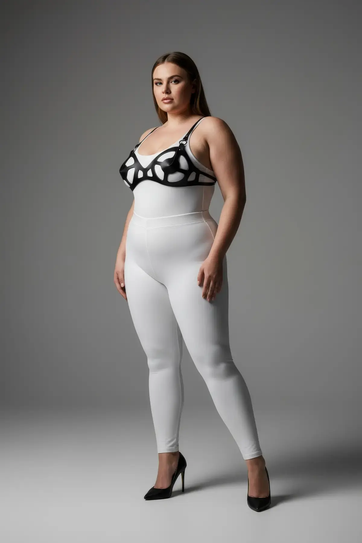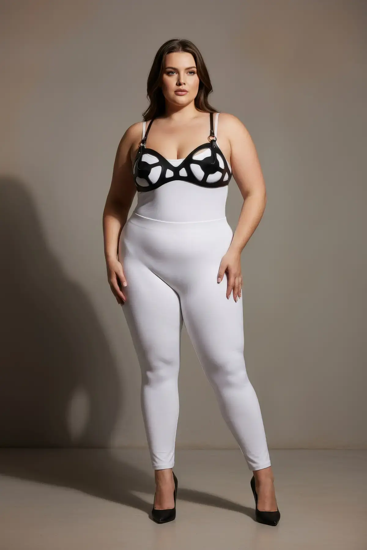 Büyük Beden Siyah Kadın Deri Jartiyer Harness Fantazi Vücut Aksesuarı - APFT228