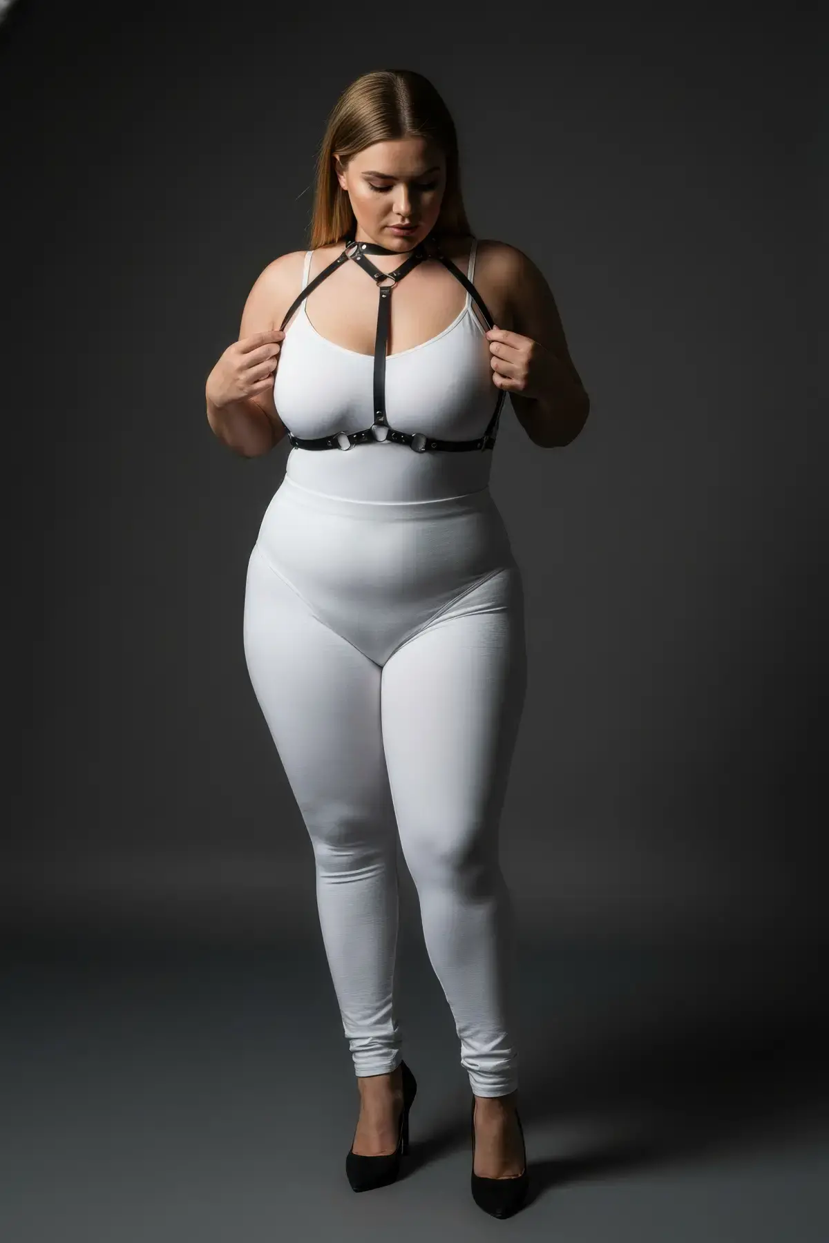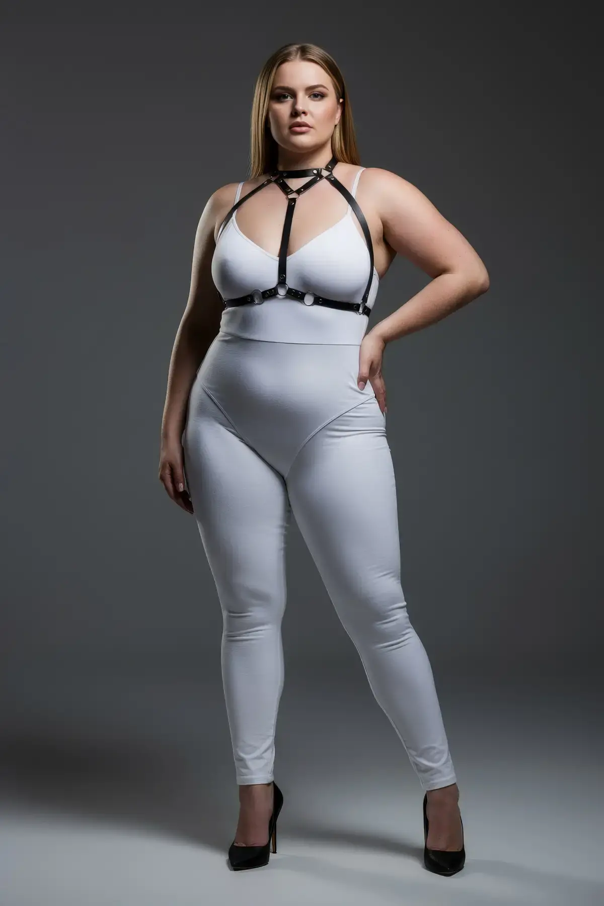 Büyük Beden Siyah Kadın Deri Jartiyer Harness Vücudu Saran Şık Kombin Aksesuarı - APFT274