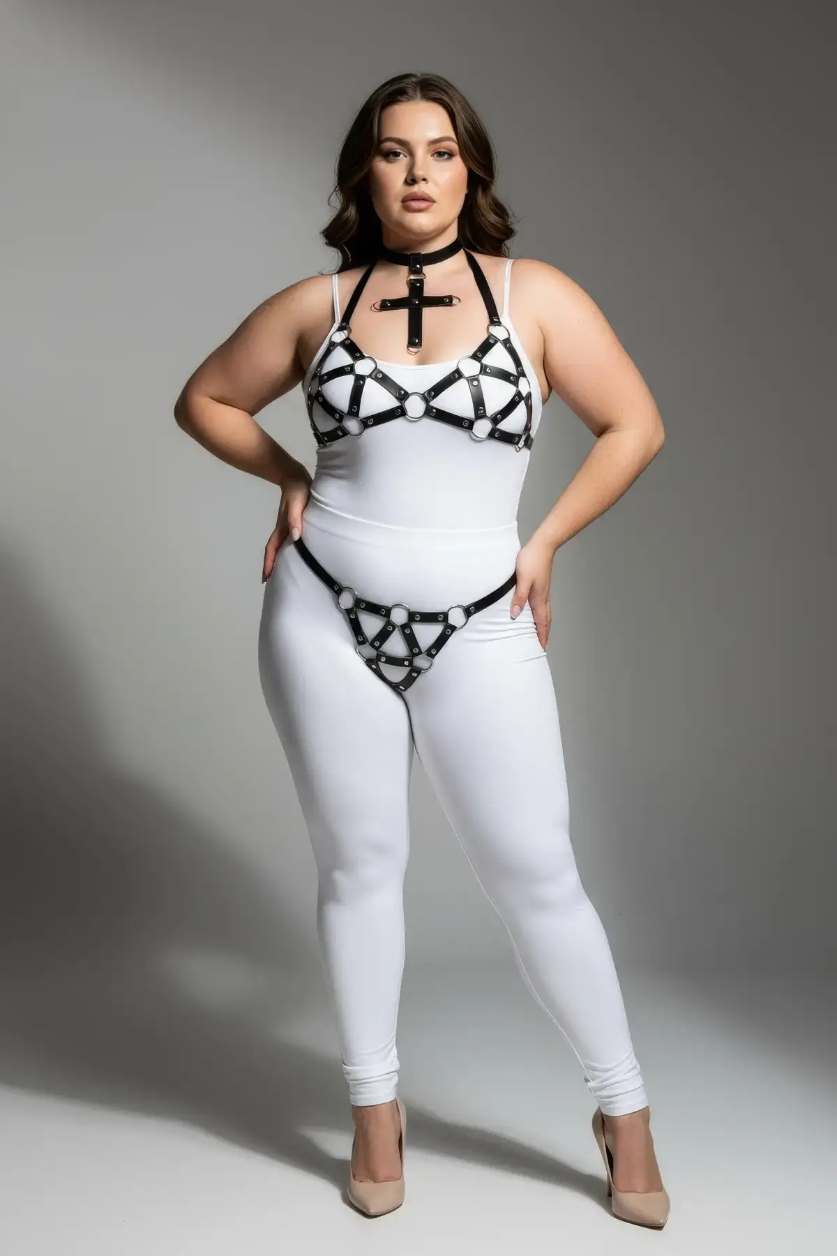 Büyük Beden Siyah Kadın Kemer Harness Stili Korse Görünümlü Deri Vücut Aksesuarı - APFT199