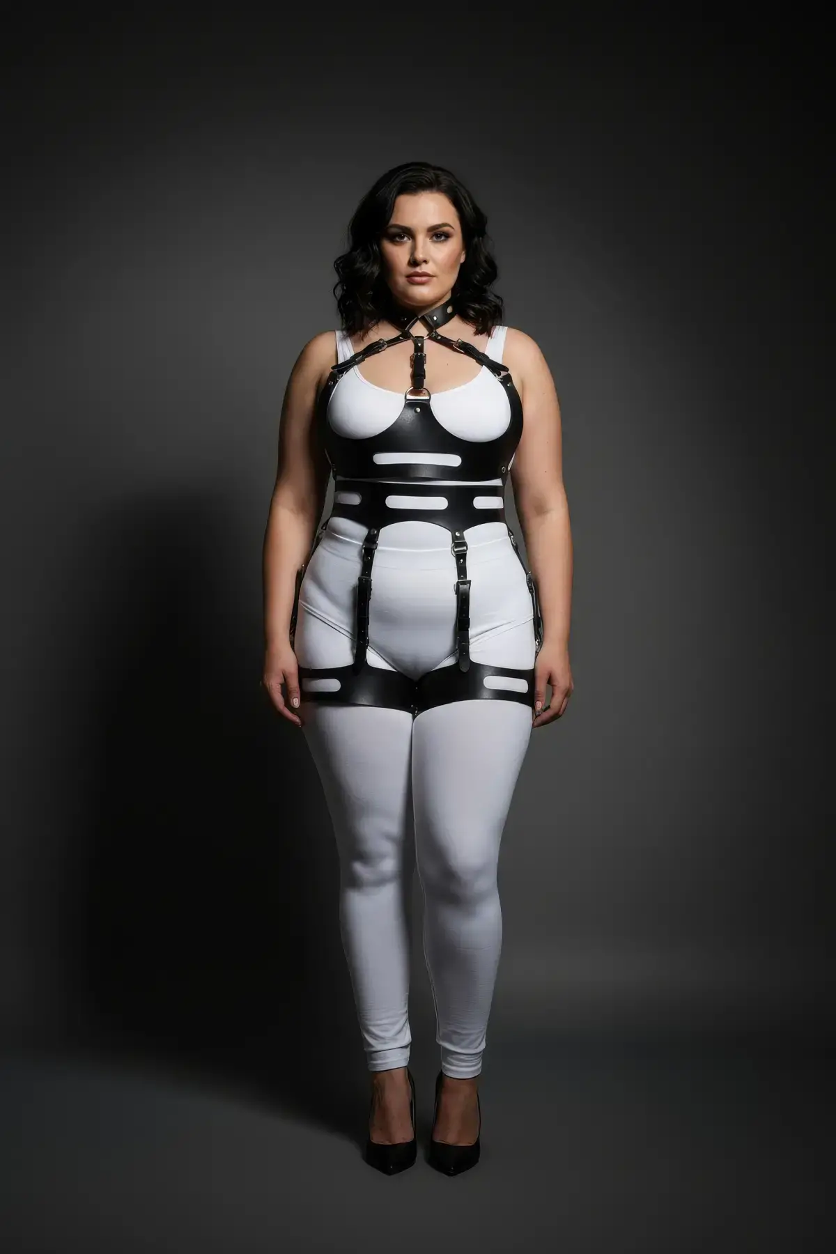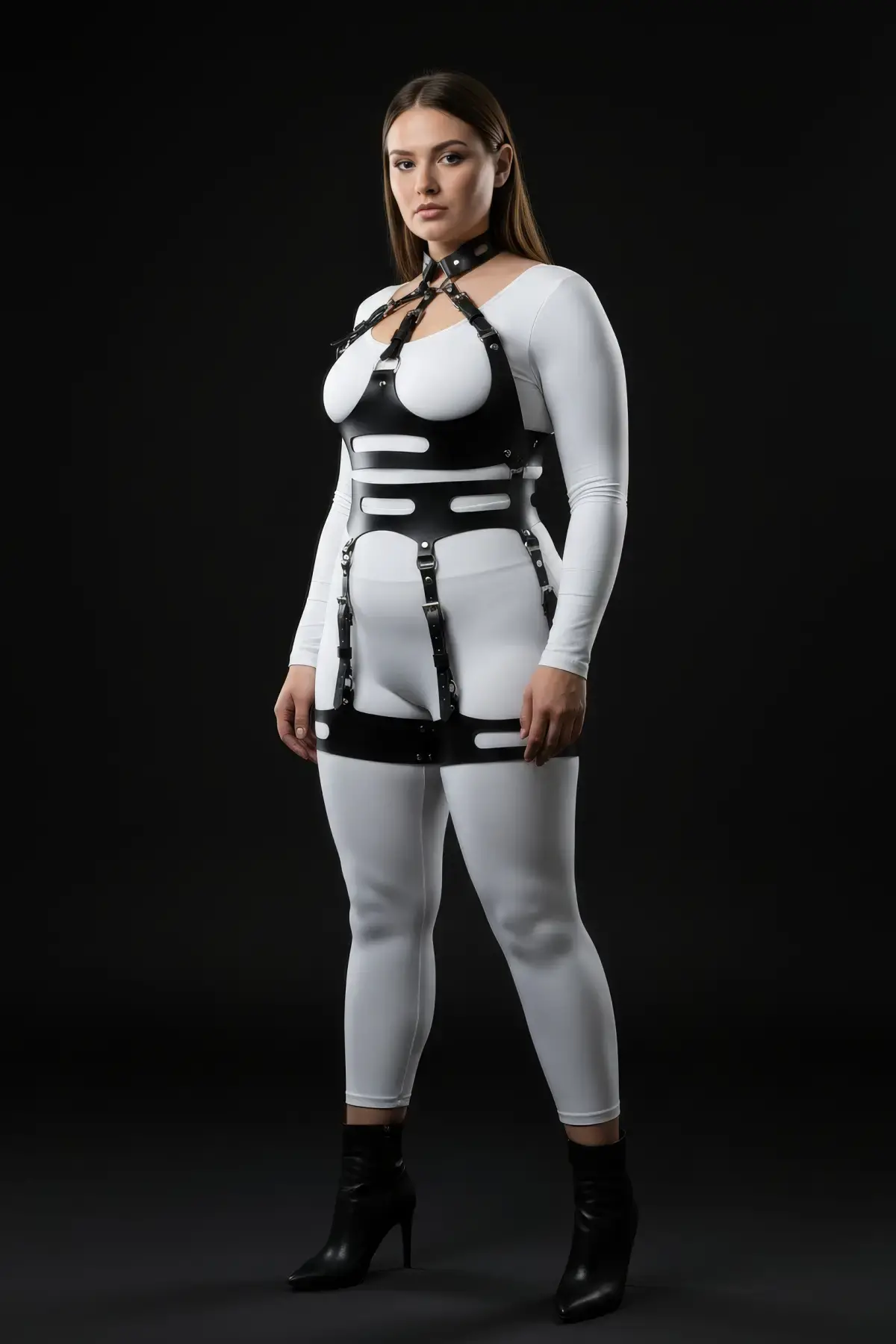 Büyük Beden Siyah Kadın Harness Takım Full Body Jartiyerli Deri Aksesuar - APFT1267