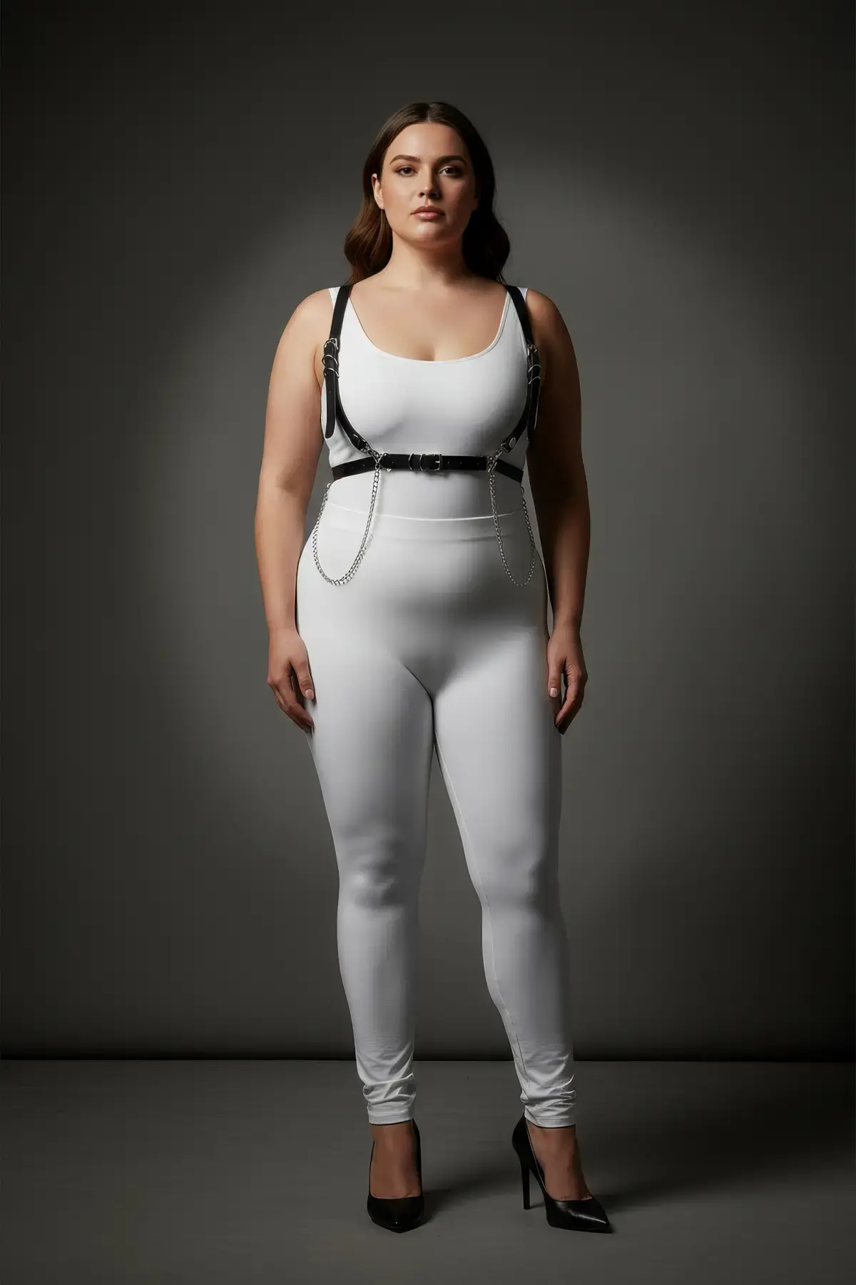 Büyük Beden Siyah Kadın Deri Harness Takım Zincir Detaylı Şık Aksesuar - APFT1176