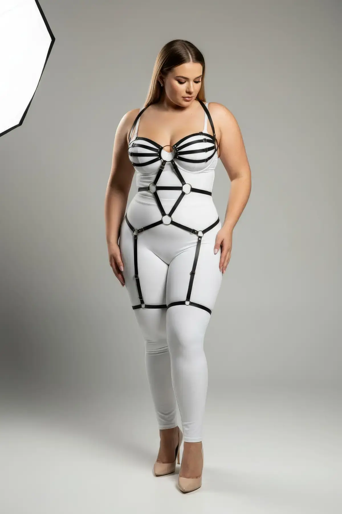 Büyük Beden Siyah Kadın Deri Jartiyer Harness Fantezi Vücut Aksesuarı - APFT568