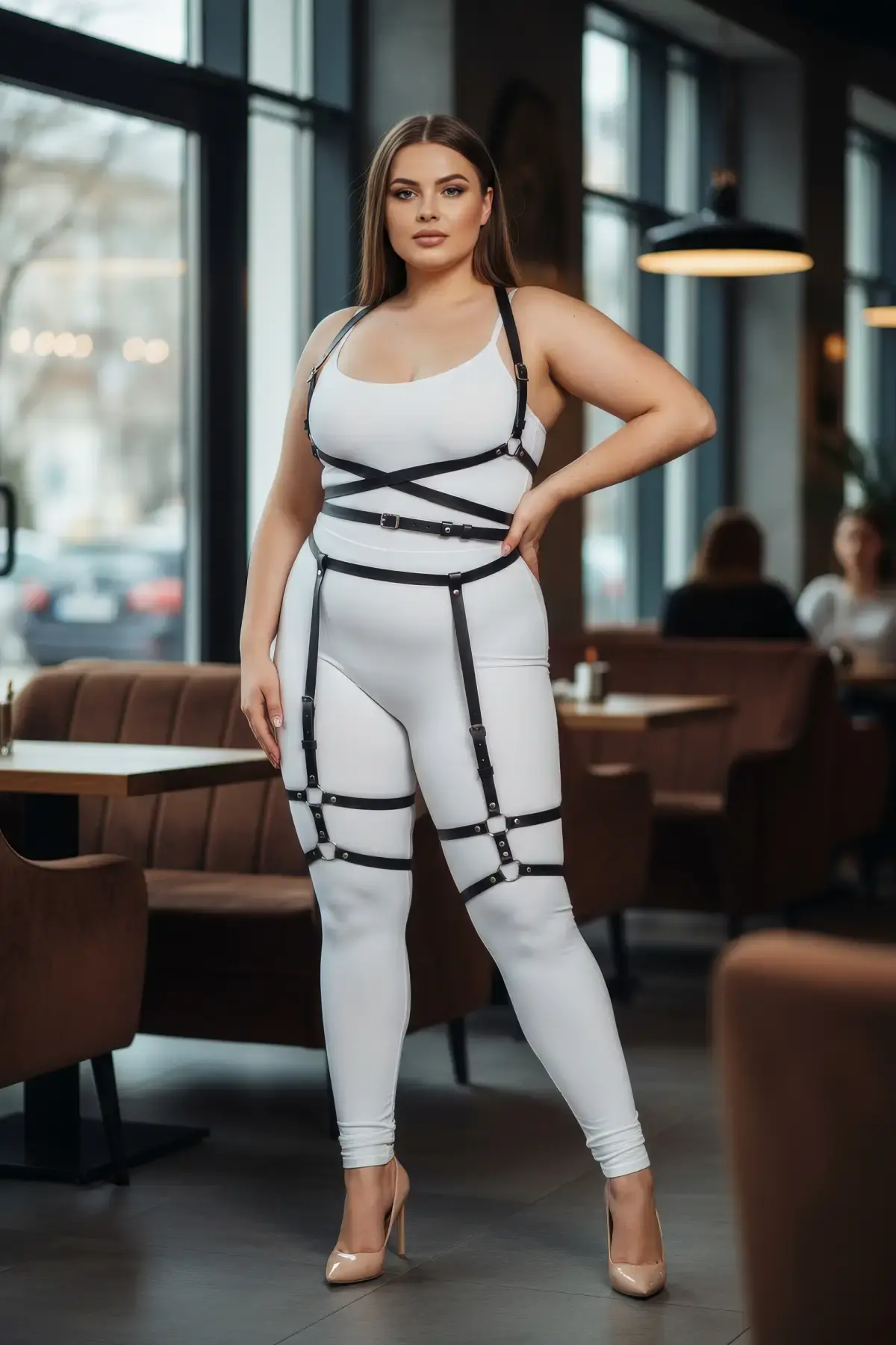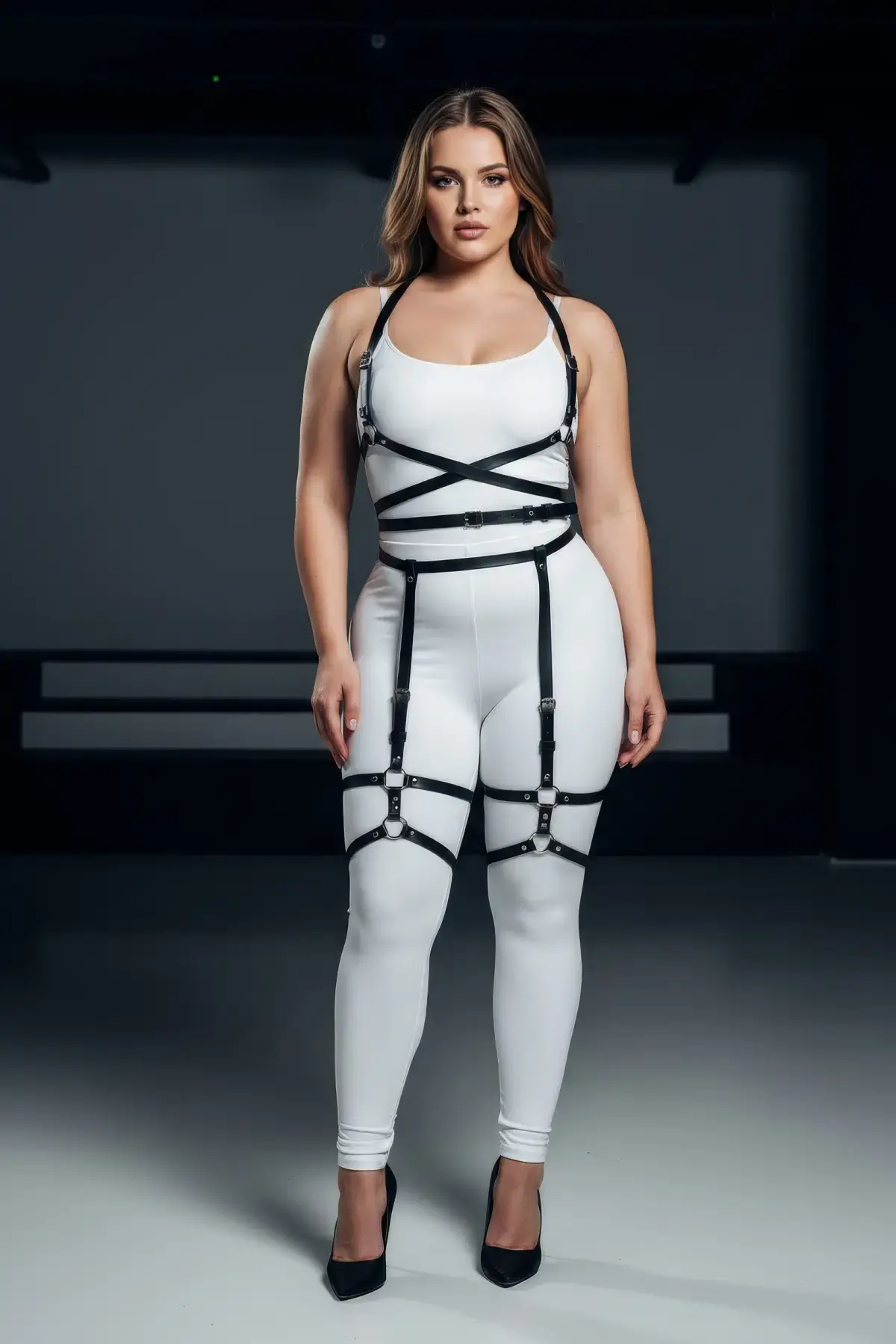 Büyük Beden Siyah Kadın Deri Jartiyer Harness Vücudu Saran Şık Kombin Aksesuarı - APFT274