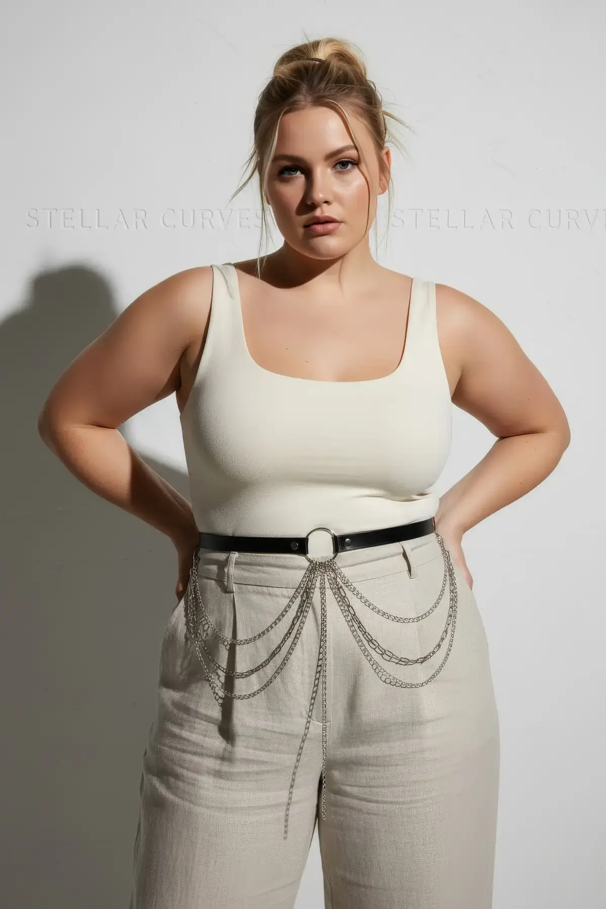 Büyük Beden Siyah Kadın Deri Kemer Çoklu Zincir Detaylı Tasarım - APFT922