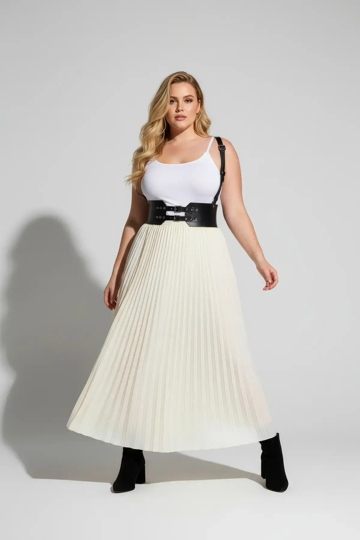 Büyük Beden Siyah Kadın Deri Kemer Geniş Korse Görünümlü Omuz Askılı - APFT853