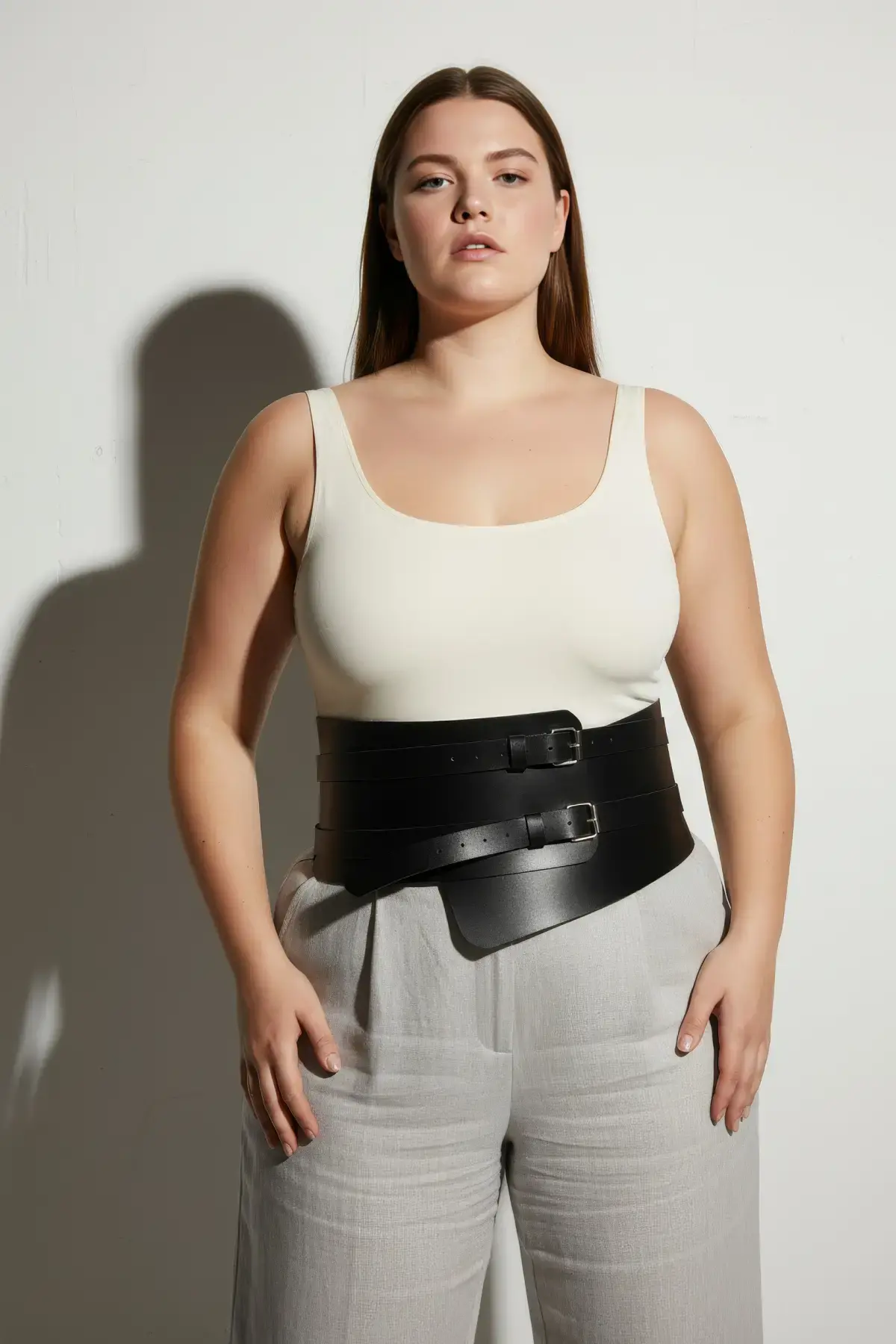 Büyük Beden Siyah Kadın Deri Korsaj Kemer Çift Tokalı Bel Vurgulayan - APFT617