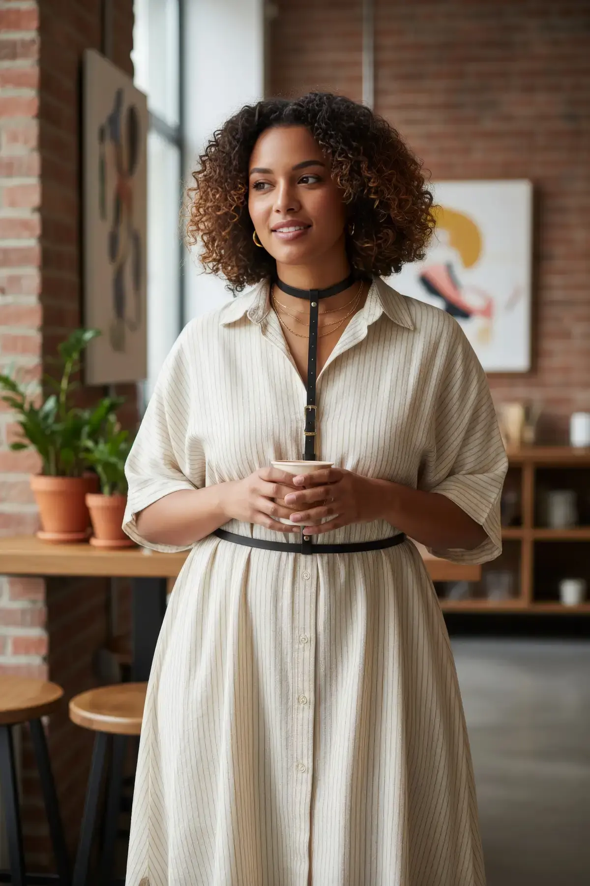 Büyük Beden Siyah Kadın Kemer Zımba Detaylı Geniş Korsaj Tasarım - APFT1087