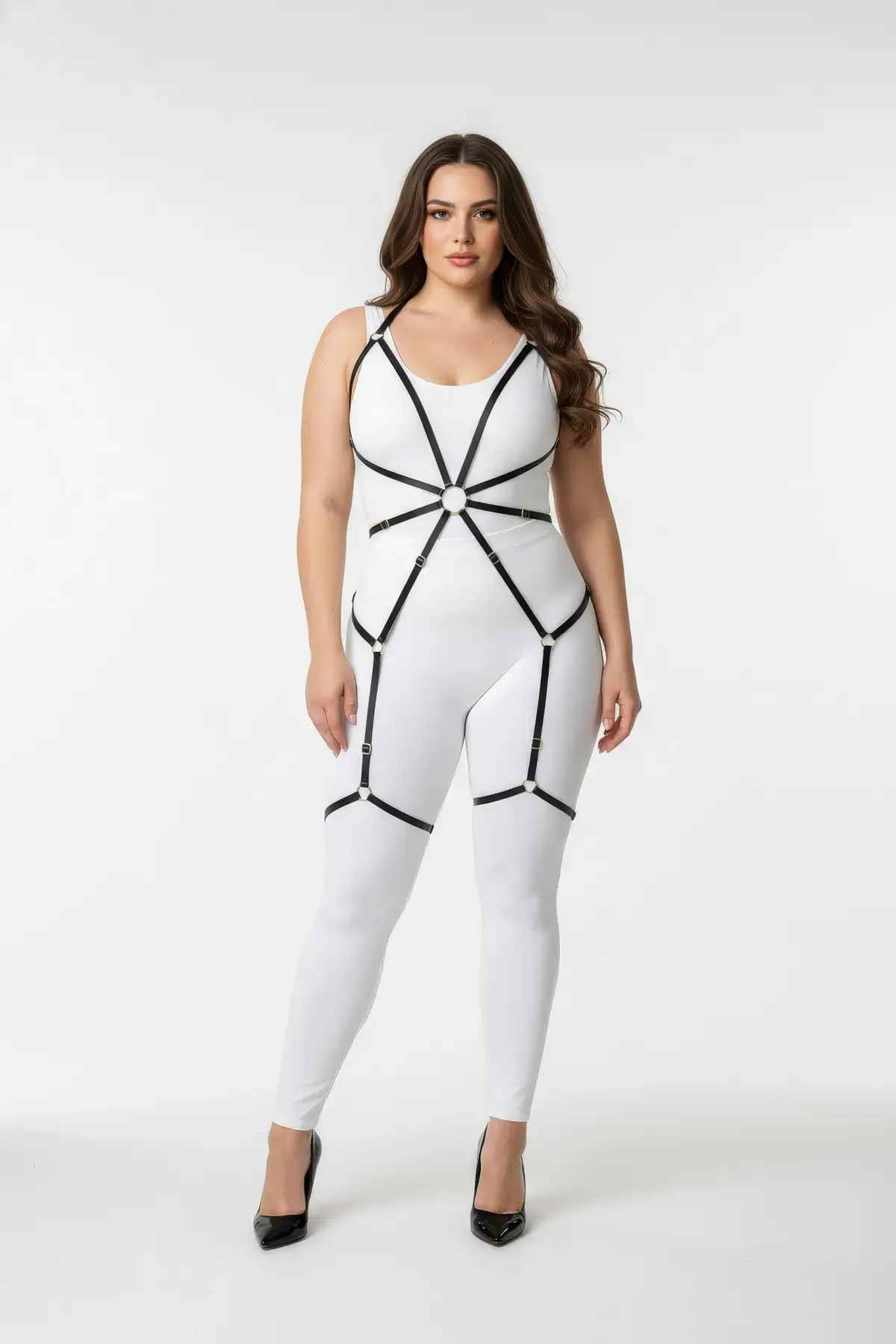 Büyük Beden Siyah Kadın Deri Harness Takım Halka Detaylı Şık Tasarım - APFT464