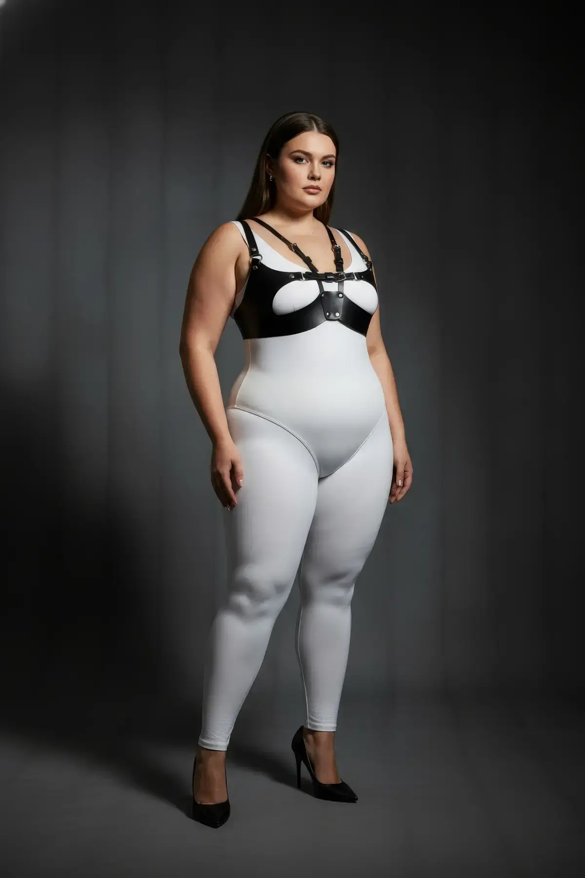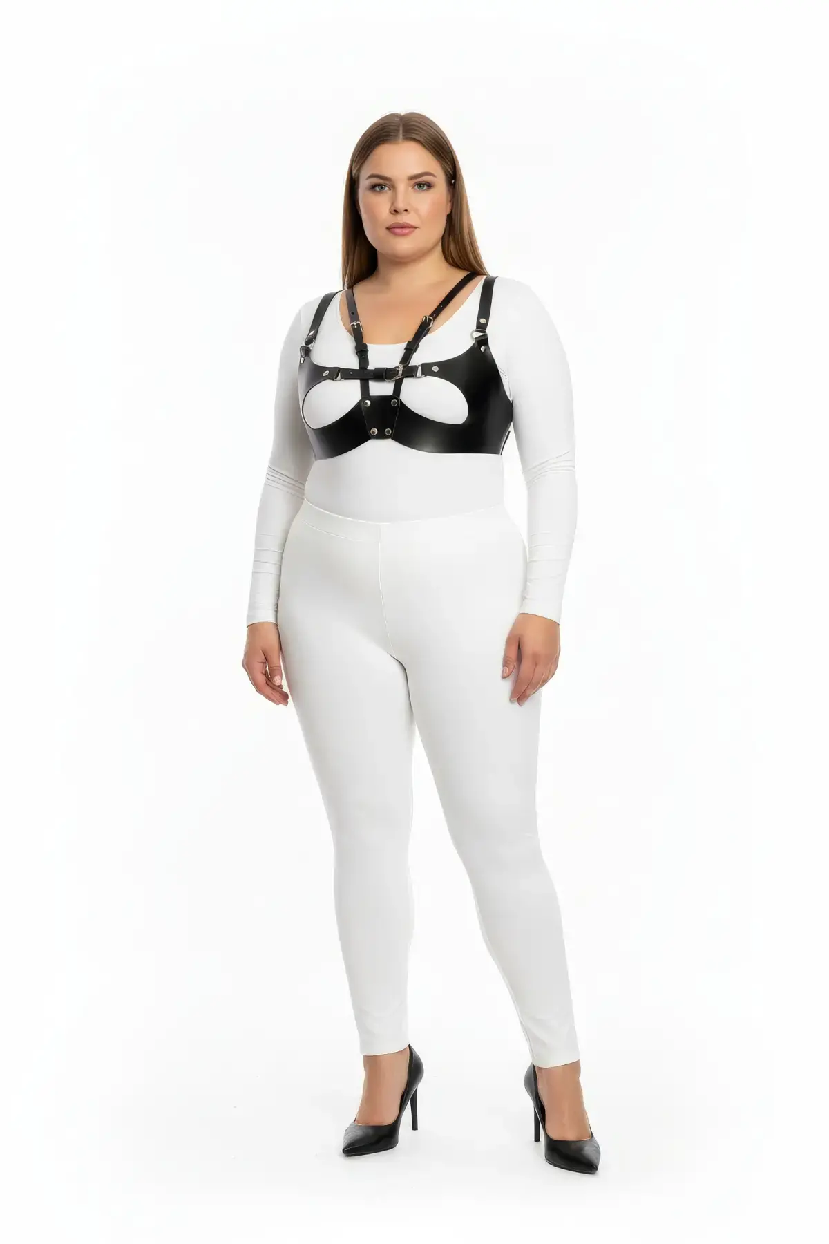 Büyük Beden Siyah Kadın Deri Harness Takım Halka Detaylı Şık Tasarım - APFT464