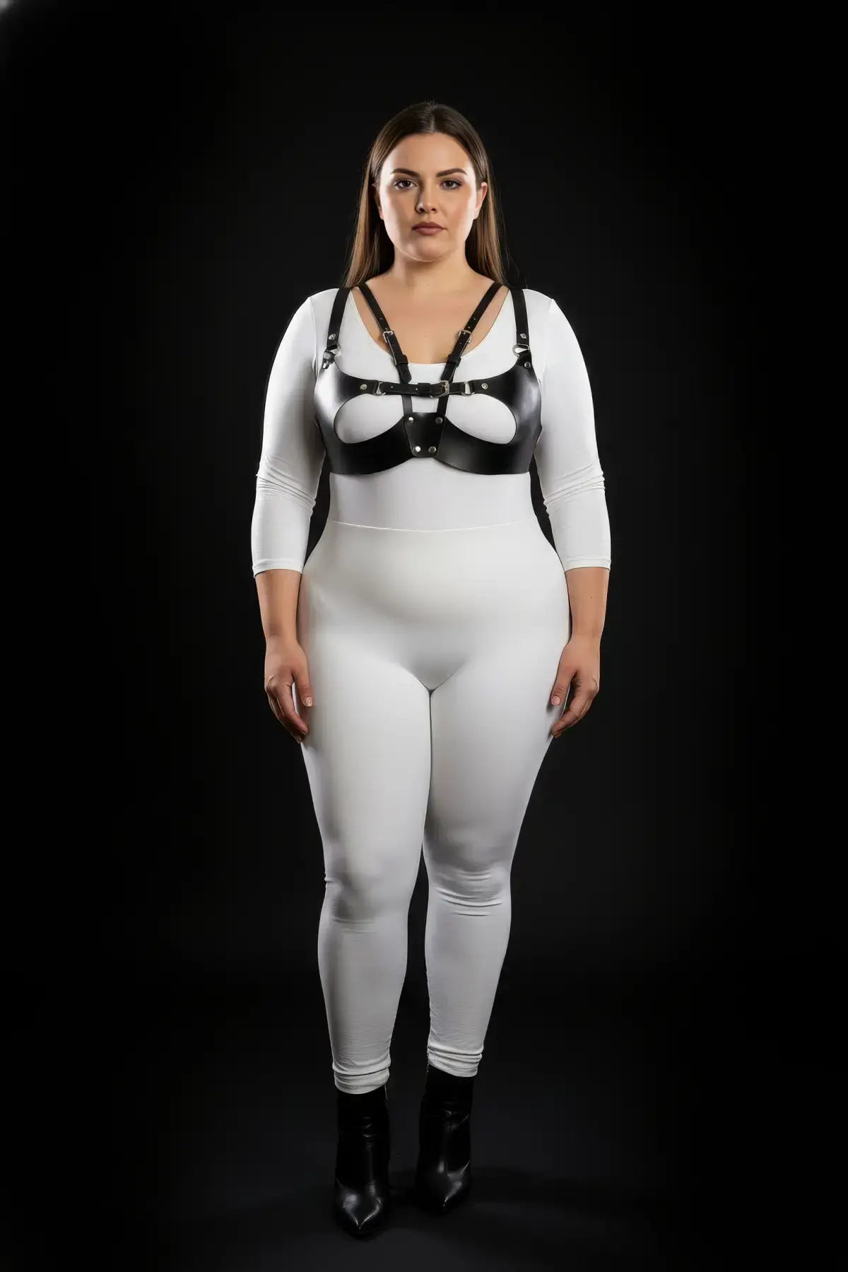 Büyük Beden Siyah Kadın Kemer Deri Harness Detaylı Şık Vücut Aksesuarı - APFT605