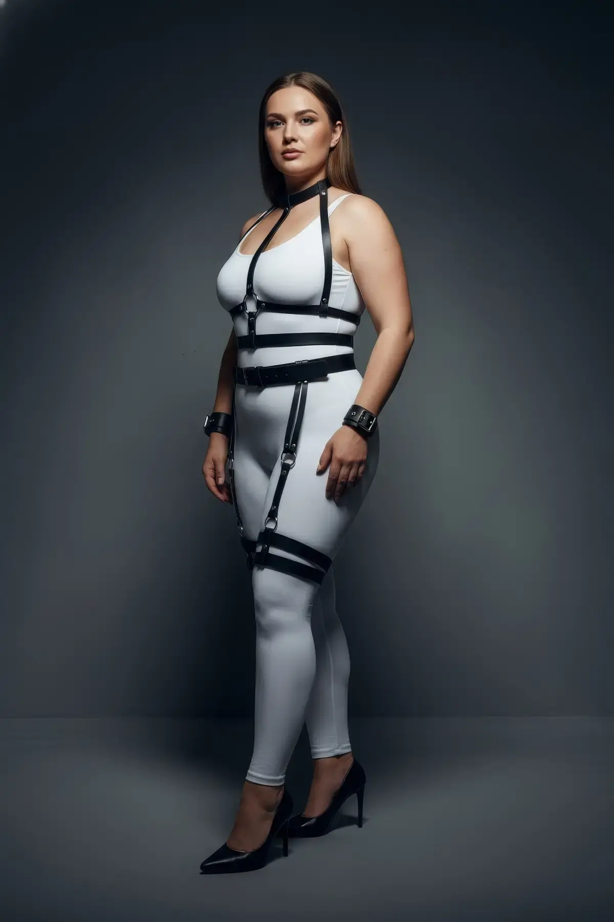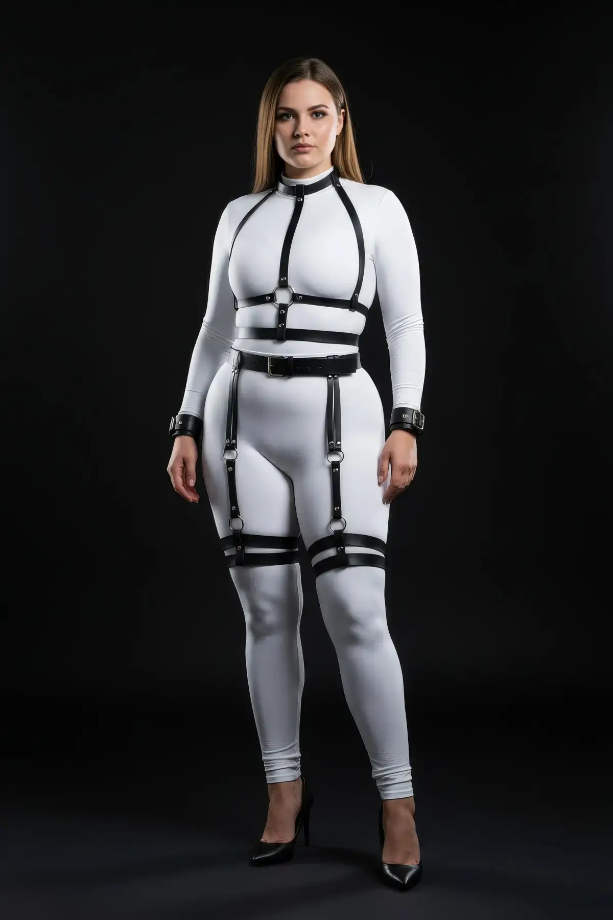 Büyük Beden Siyah Kadın Kemer Çok Tokalı Deri Harness Korse Tasarım - APFT529