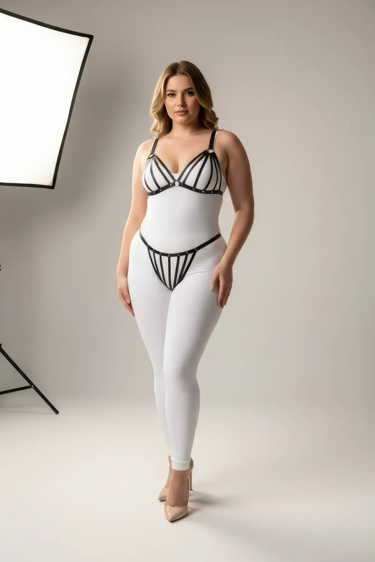 Büyük Beden Siyah Kadın Lastik Harness Halka Detaylı Şık Vücut Aksesuarı - APFT163