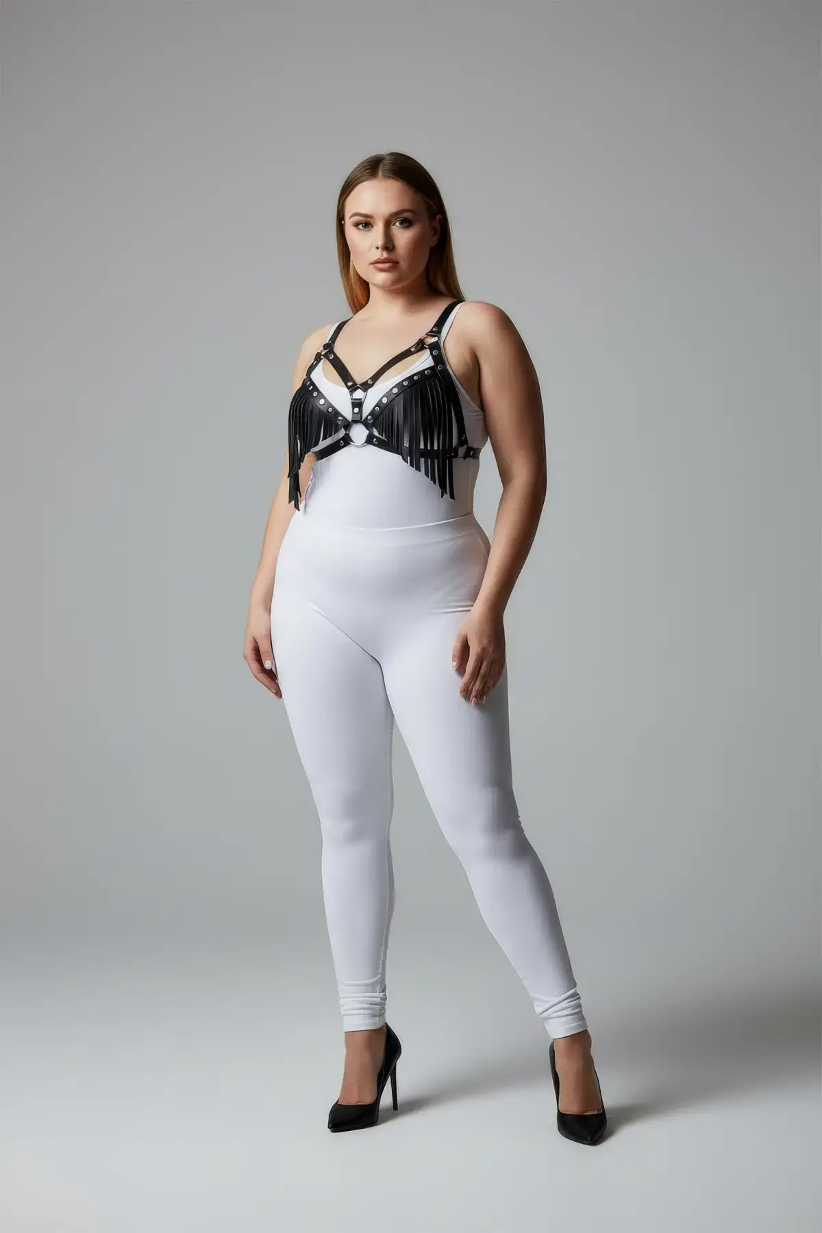 Büyük Beden Siyah Kadın Kemer Deri Harness Vücut Aksesuarı Kombin Tamamlayıcı - APFT938