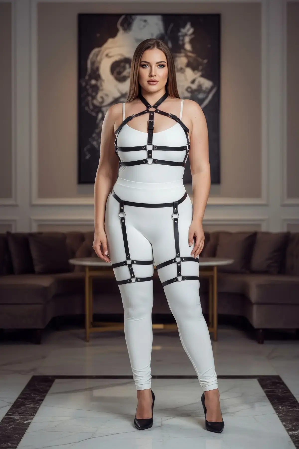 Büyük Beden Siyah Kadın Jartiyer Harness Takımı Ayarlanabilir Fantezi Aksesuarı - APFT272