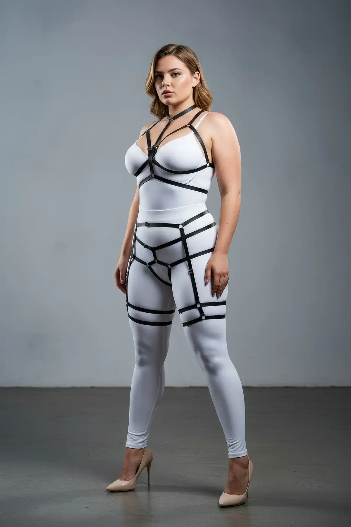 Büyük Beden Siyah Kadın Jartiyer Harness Vücudu Saran Şık Fantazi Aksesuar - APFT142