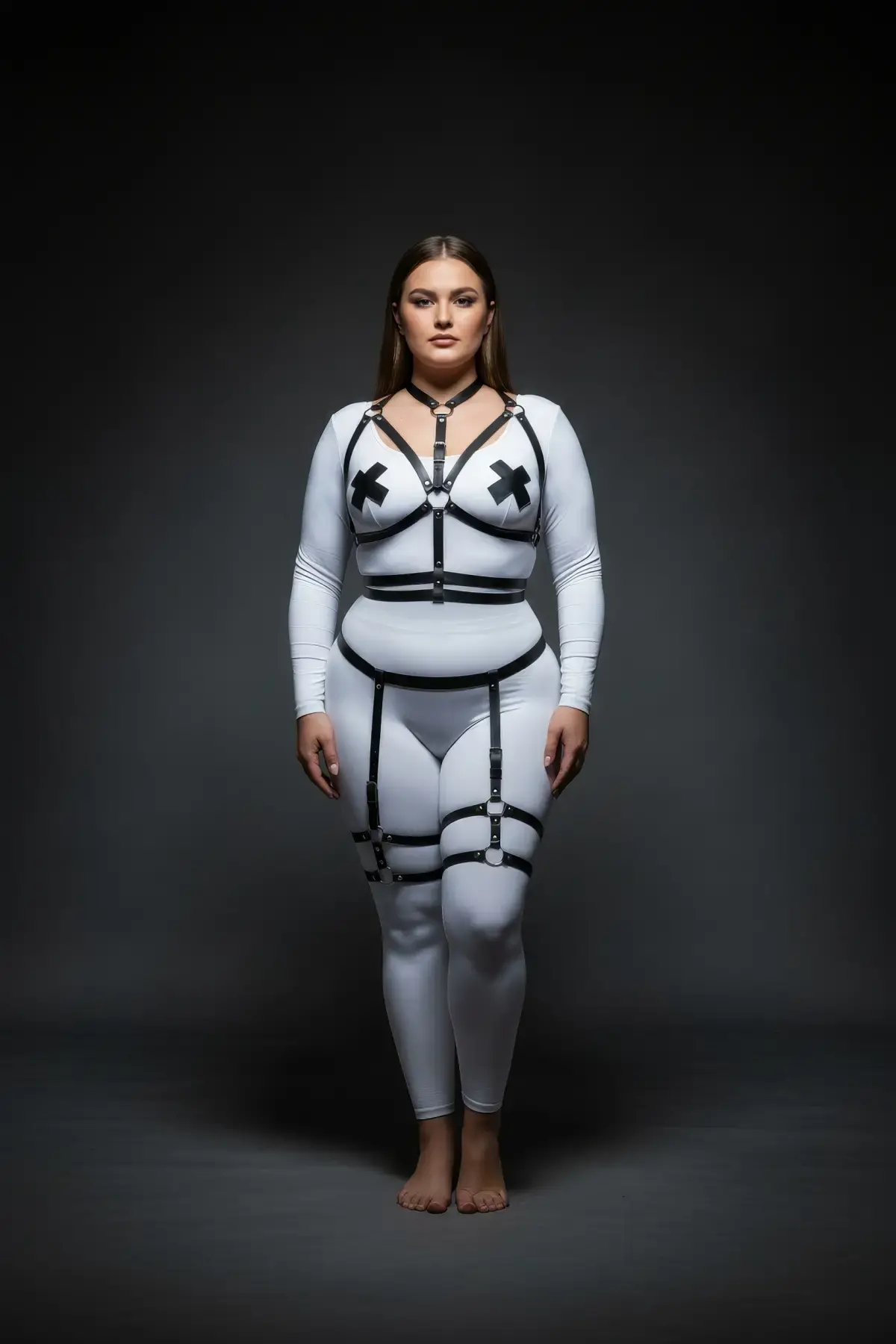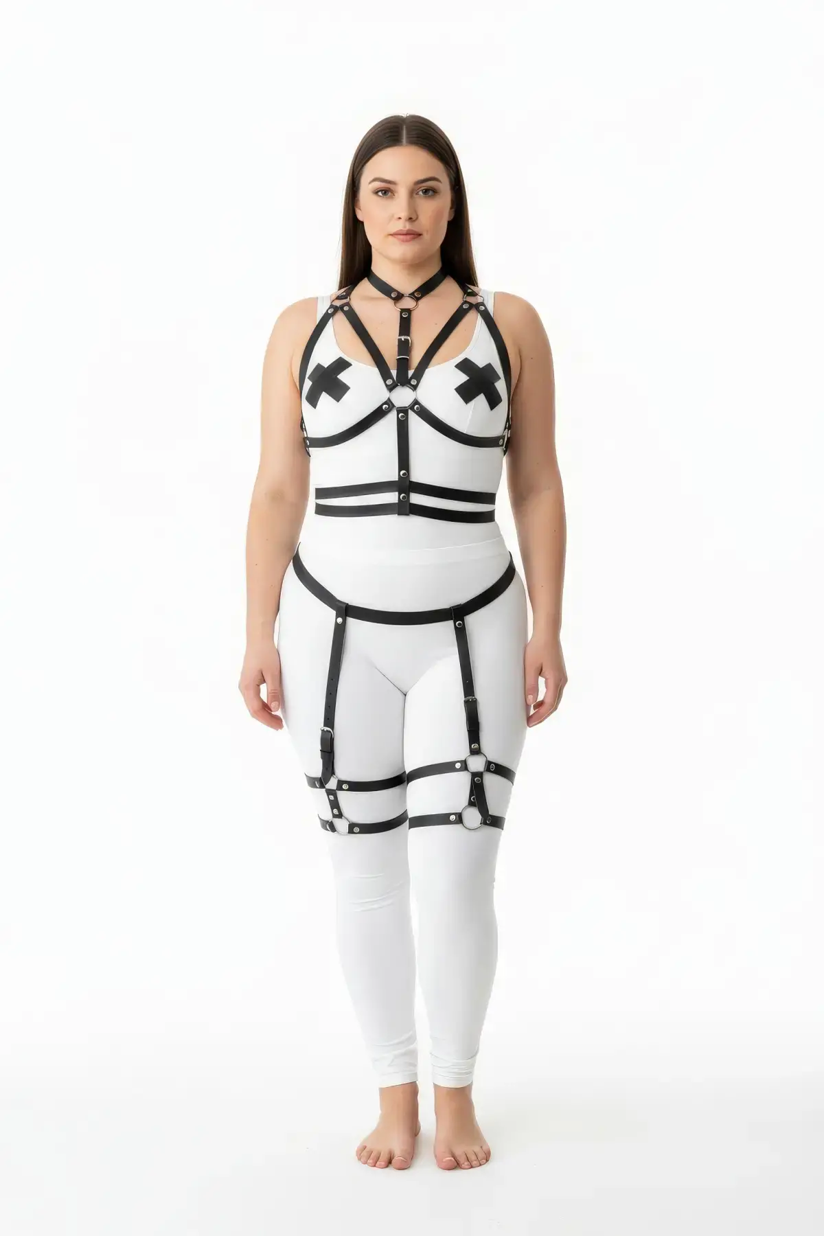 Büyük Beden Siyah Kadın Deri Jartiyer Harness Bel ve Bacak Detaylı Şık Aksesuar - APFT598