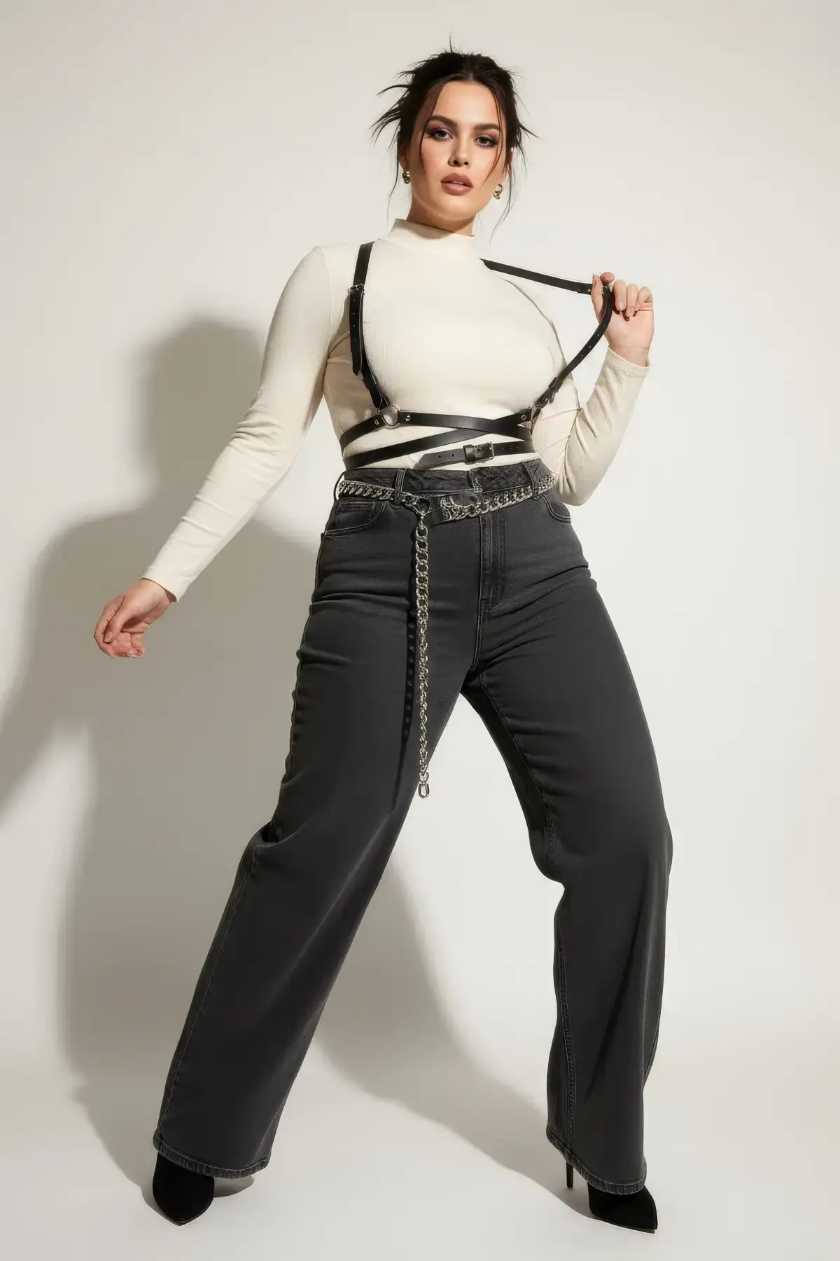 Büyük Beden Siyah Kadın Kemer Çapraz Askılı Deri Vücut Aksesuarı - APFT198