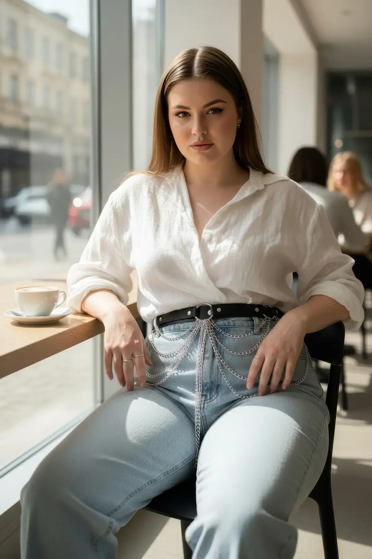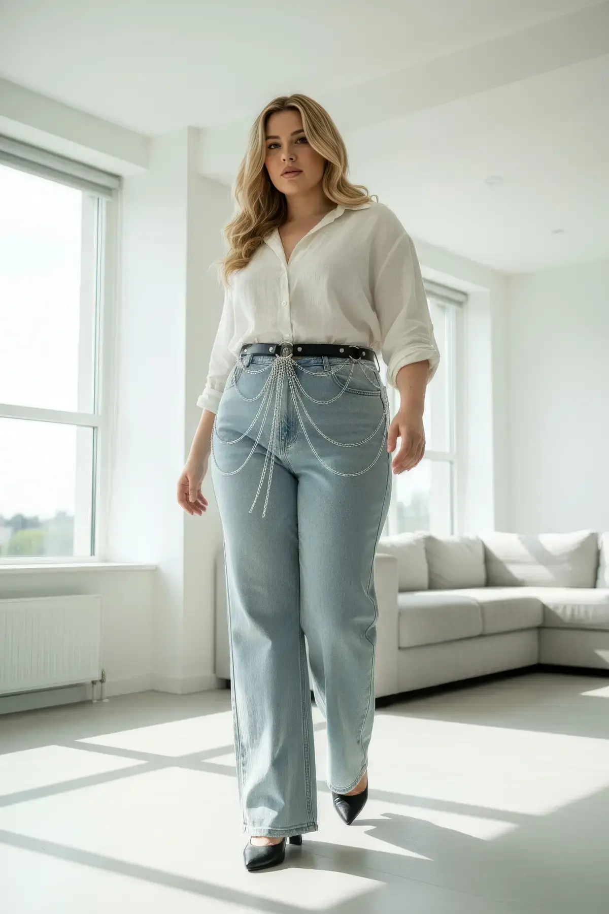 Büyük Beden Siyah Kadın Kemer Çoklu Zincir Detaylı Kombin Aksesuarı - APFT512