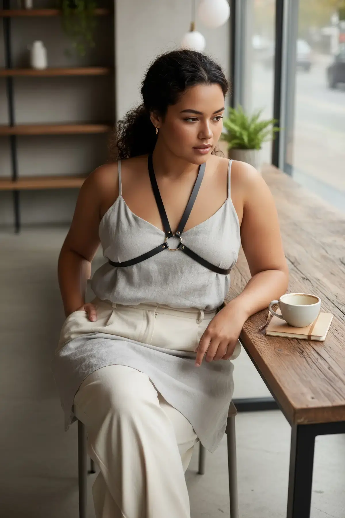 Büyük Beden Siyah Kadın Deri Harness Takım Yüksek Yaka Kombin Aksesuarı - APFT1286