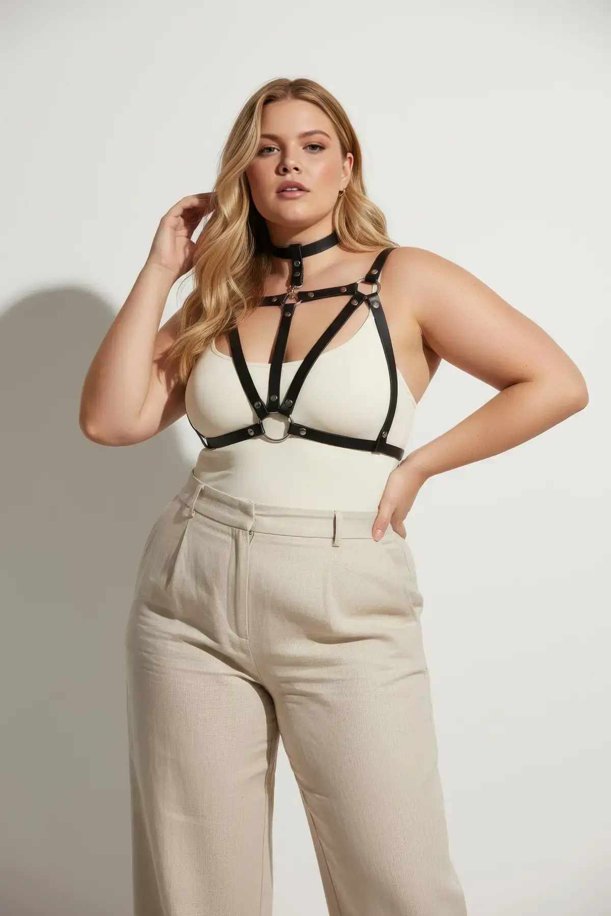 Büyük Beden Siyah Kadın Kemer Deri Harness Detaylı Şık Vücut Aksesuarı - APFT605