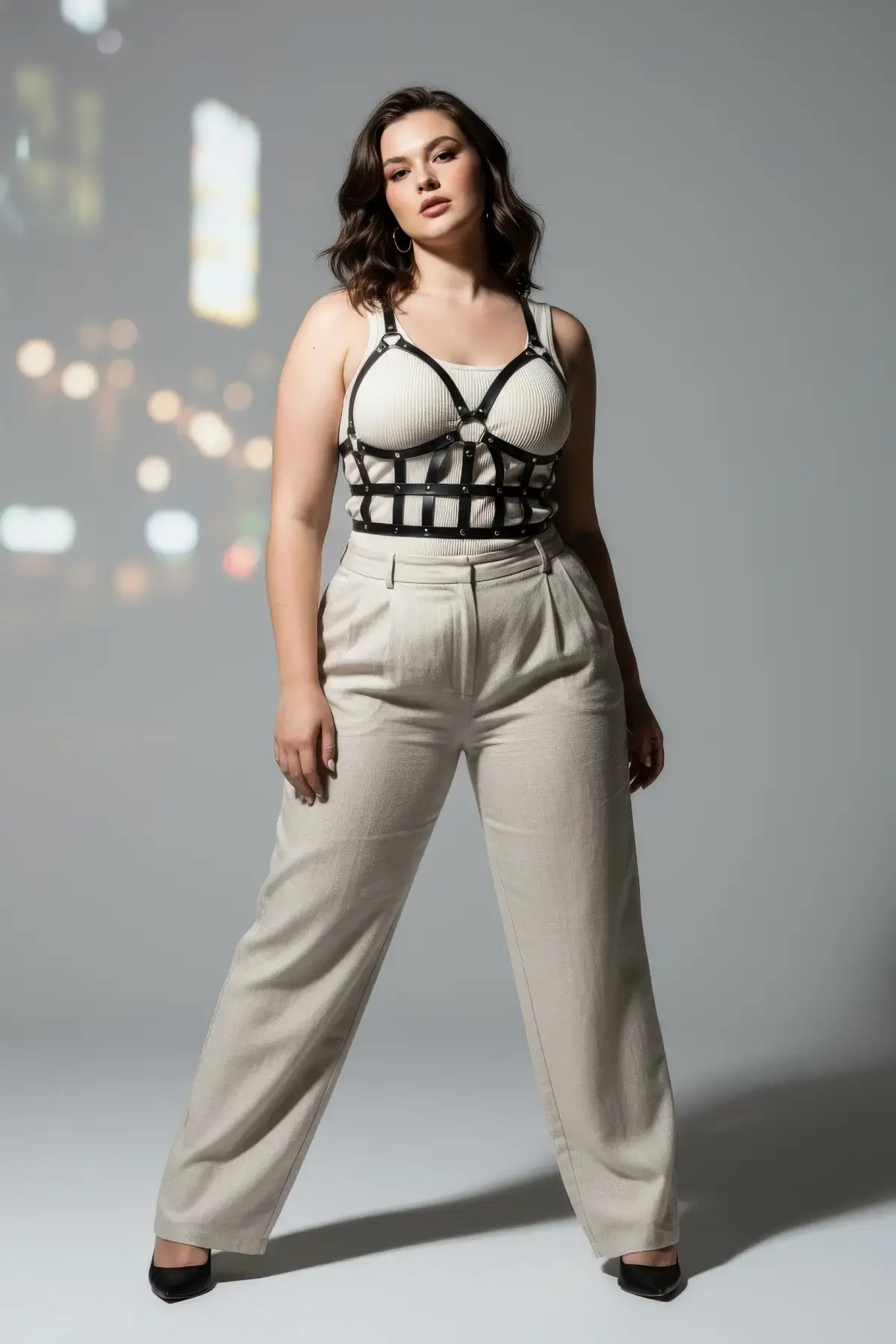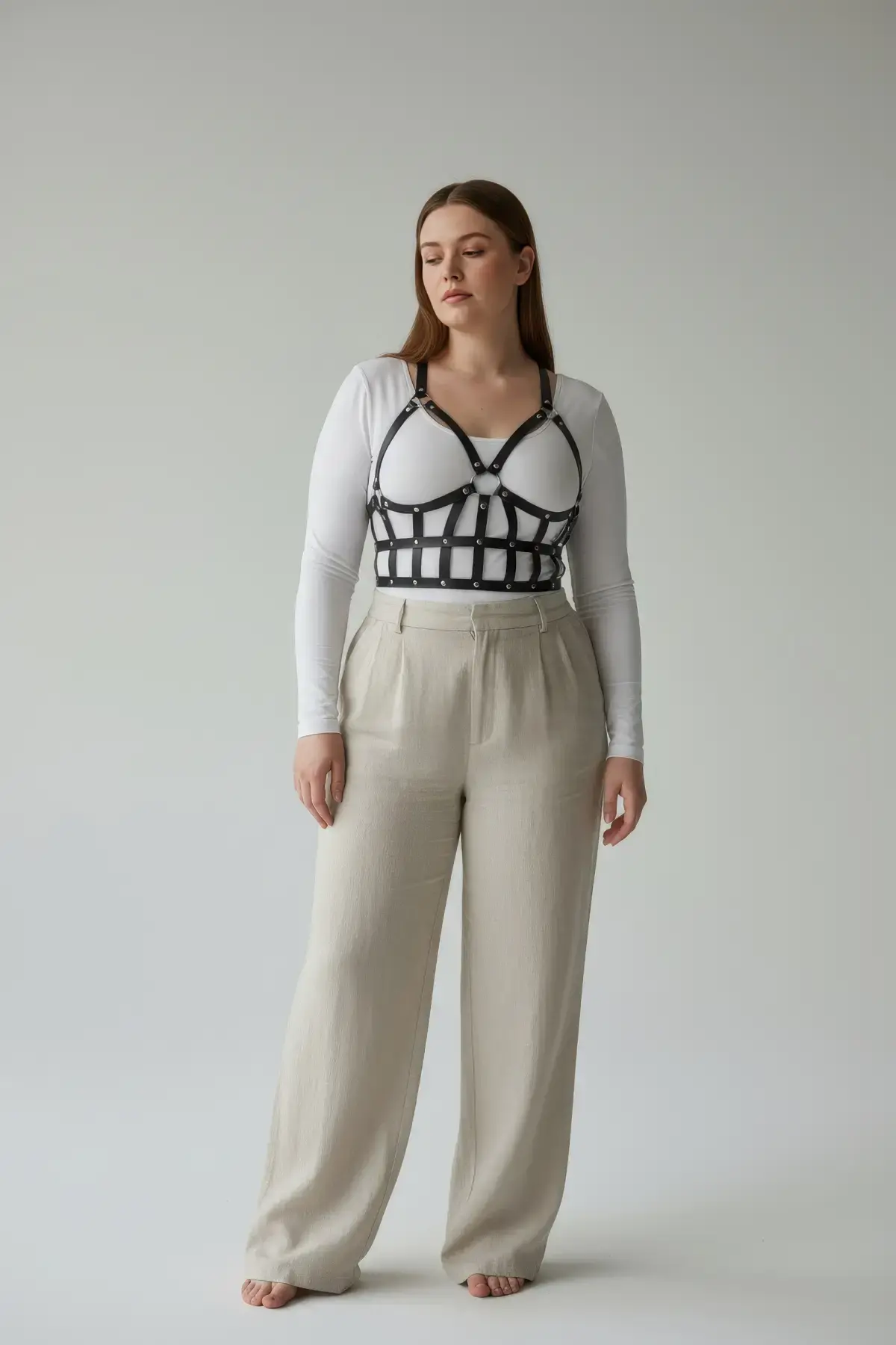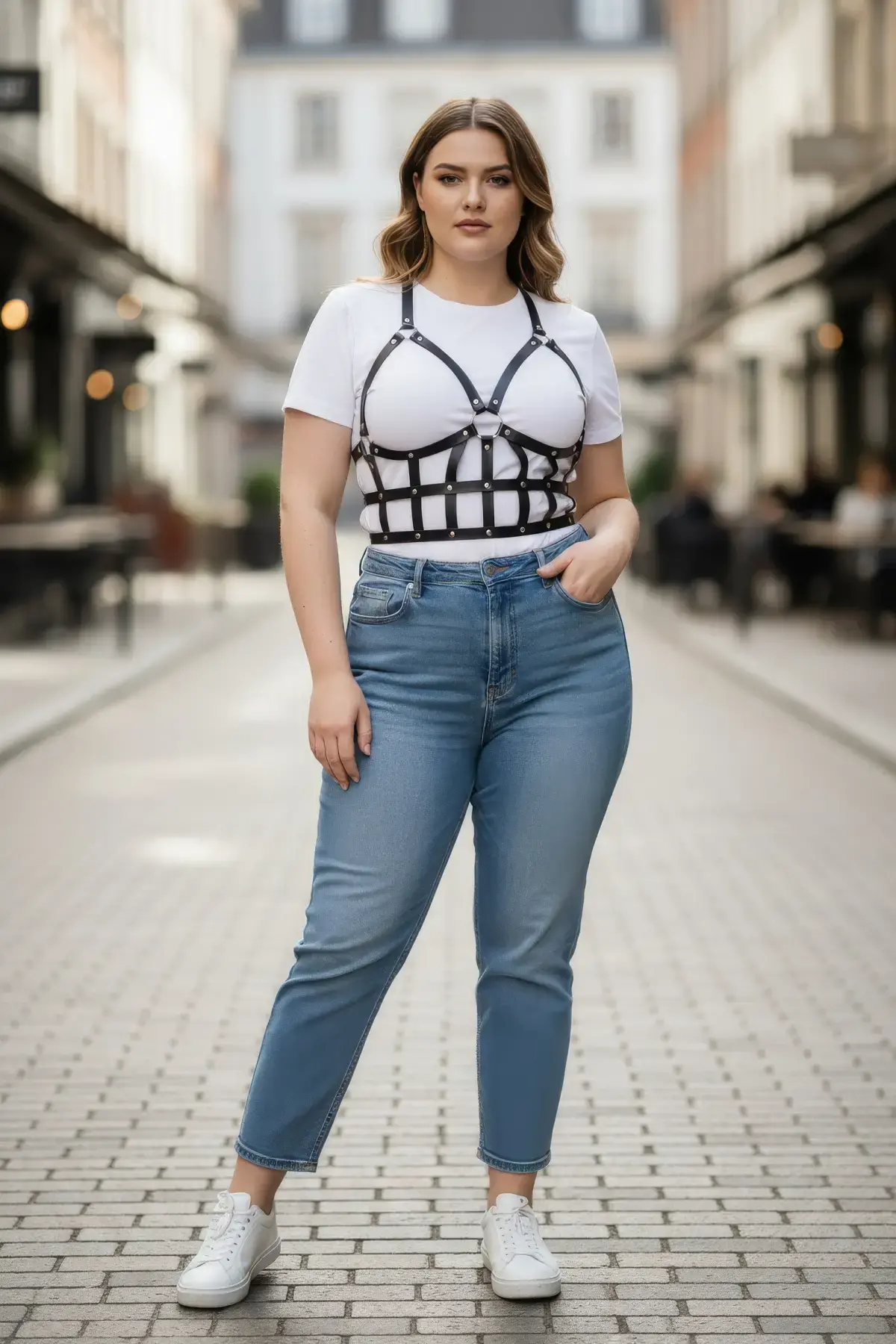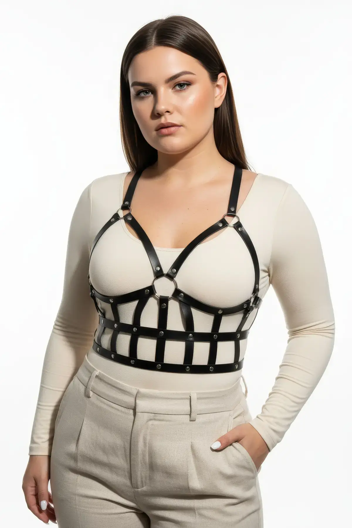 Büyük Beden Siyah Kadın Kemer Deri Vücut Harness Kombin Tamamlayıcı - APFT819