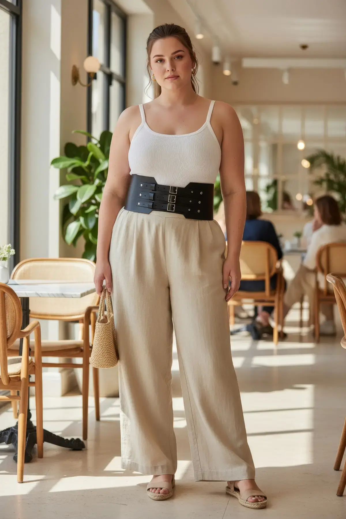 Büyük Beden Siyah Kadın Kemer Geniş Korse Tarzı Üç Tokalı - APFT618