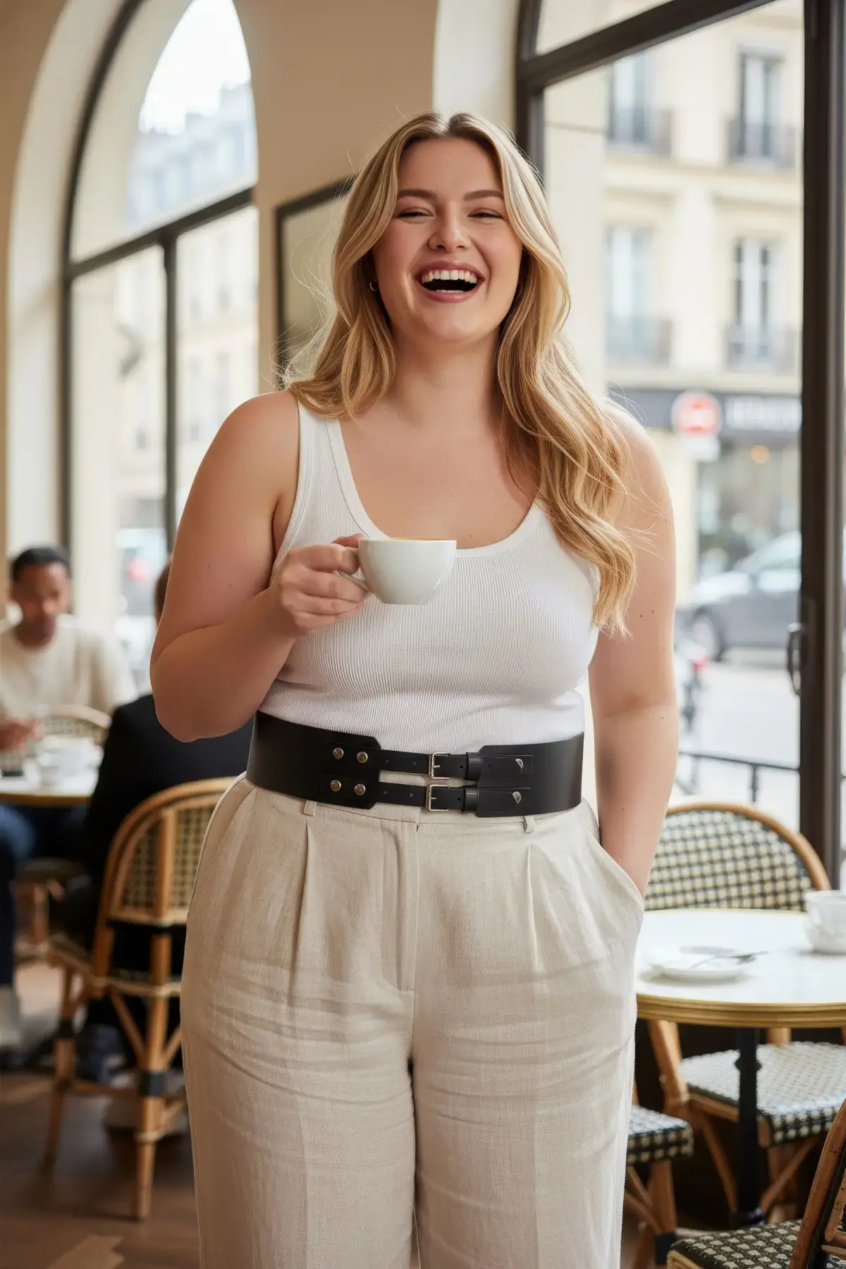 Büyük Beden Siyah Kadın Kemer Kalın Formda Çift Tokalı Zımba Detaylı - APFT1203